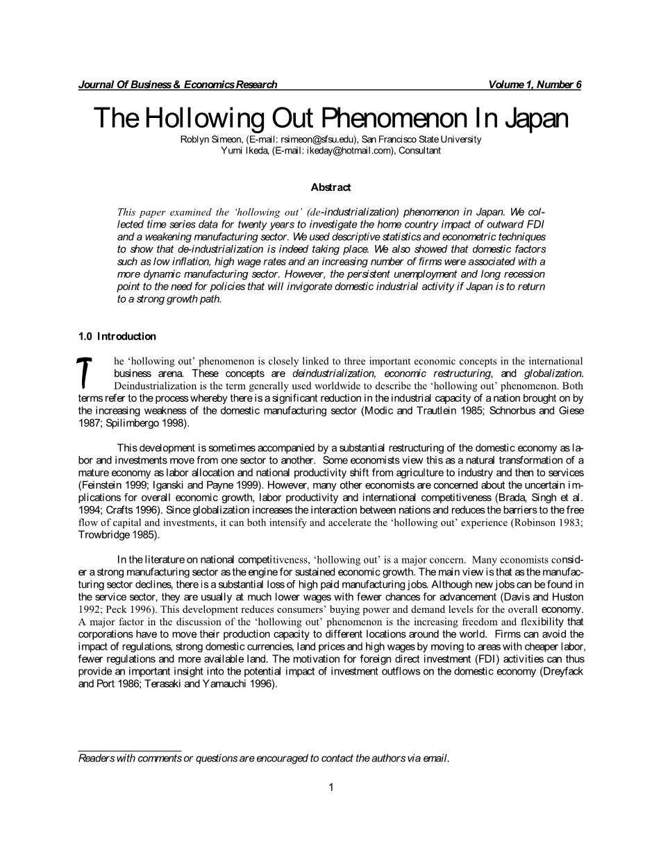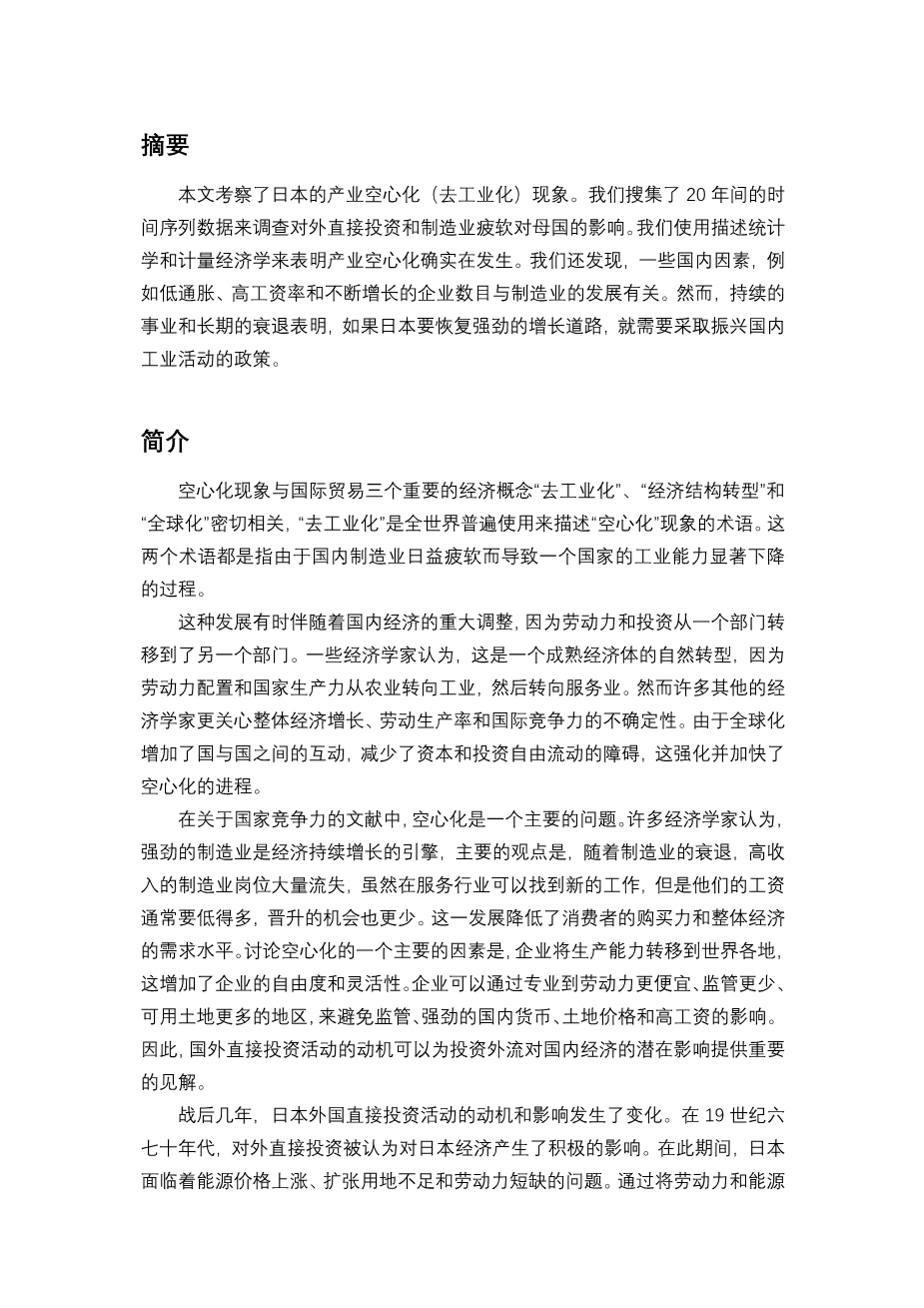 日本的空洞化现象外文翻译资料 2023-02-03 10:58:31 英语原文共 12 页,剩余内容已隐藏,支付完成后下载完整资料 英语译文共 4 页,剩余内容已隐藏,支付完成后下载完整资料 资料编号:[260450],资料为PDF文档或Word文档,PDF文档可免费转换为Word 您需要先支付 30元 才能查看全部内容!立即支付 发小红书推广免费获取该资料资格。点击链接进入获取推广文案即可: Ai一键组稿 | 降AI率 | 降重复率 | 论文一键排版 PREVIOUS NEXT 您可能感兴趣的文章 环境规制对我国制造业行业就业的影响研究开题报告 标准化与技术创新的互动效应研究开题报告 新常态下江苏省出口贸易对就业的影响及对策分析开题报告 环境规制对FDI影响的地区差异研究——基于江苏省面板数据的实证分析开题报告 人民币贬值对中国大豆进口影响实证研究开题报告 交通通达度对于西北五省旅游业发展的影响分析文献综述 中国农产品对“一带一路”沿线国家出口结构分析文献综述 国际贸易摩擦对中国轻工业发展的影响文献综述 “一带一路”战略下中俄贸易互补性及对策研究文献综述 文化产业集聚对产业结构影响的实证研究开题报告