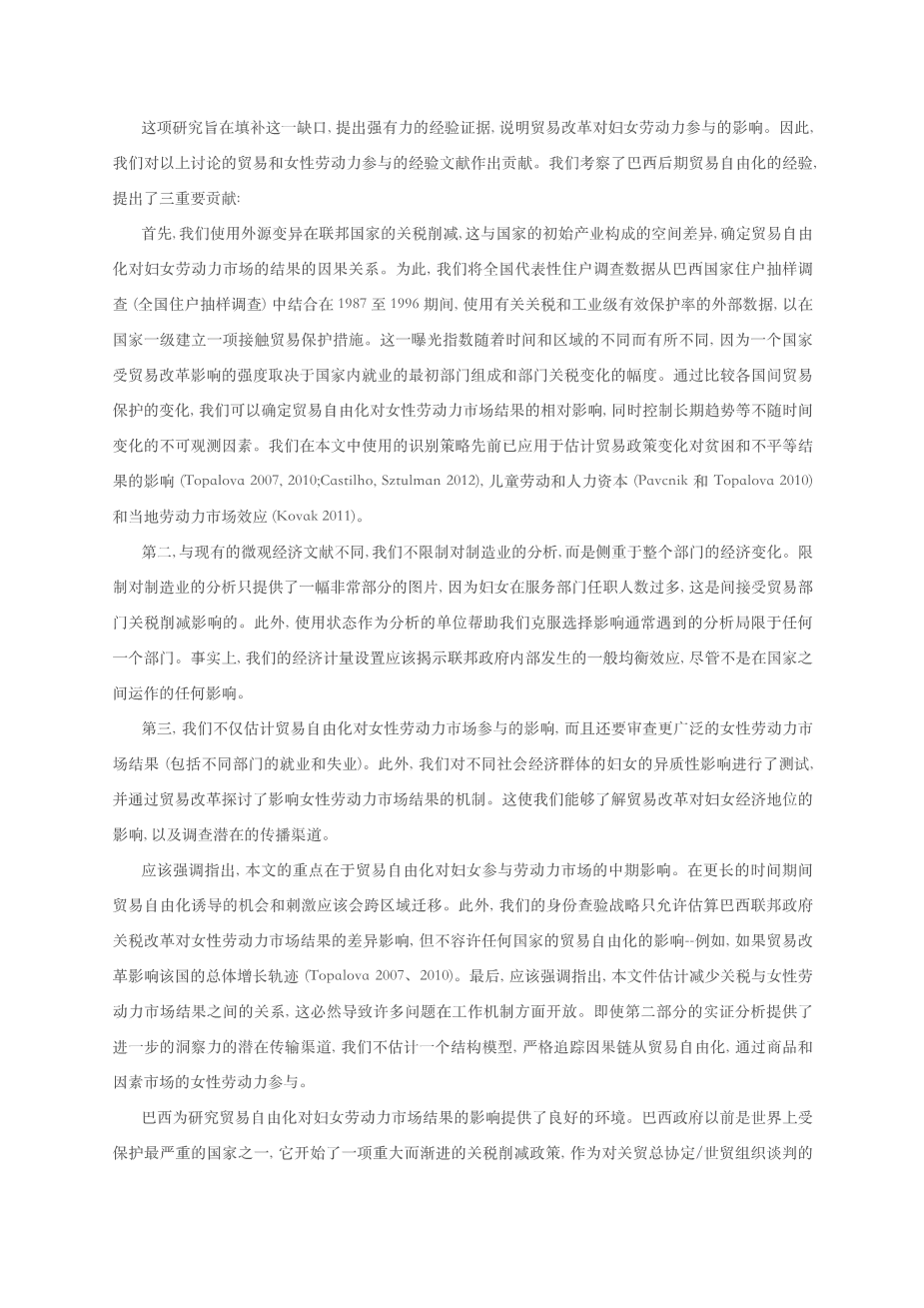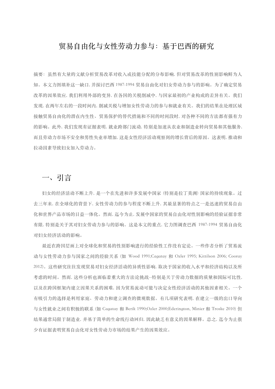 贸易自由化与女性劳动力参与:基于巴西的研究外文翻译资料