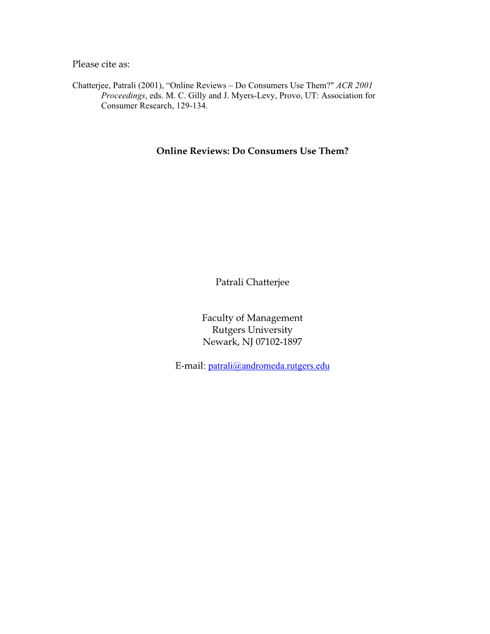 外文文献出处:Chatterjee P . Online Reviews: Do Consumers Use Them?[J]. Advances in Consumer Research, 2001, 28.