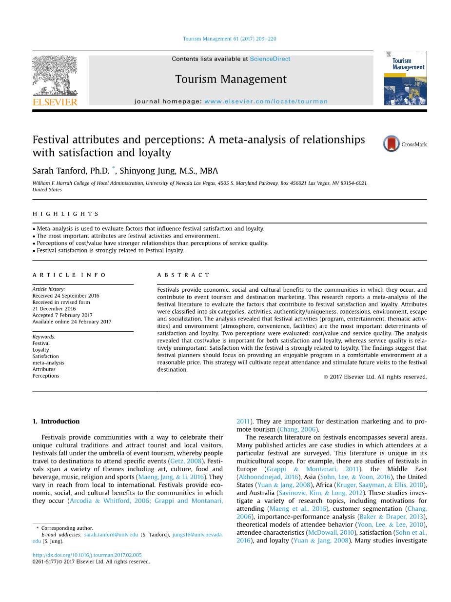 Festival attributes and perceptions: Ameta-analysis of relationships with satisfaction and loyalty