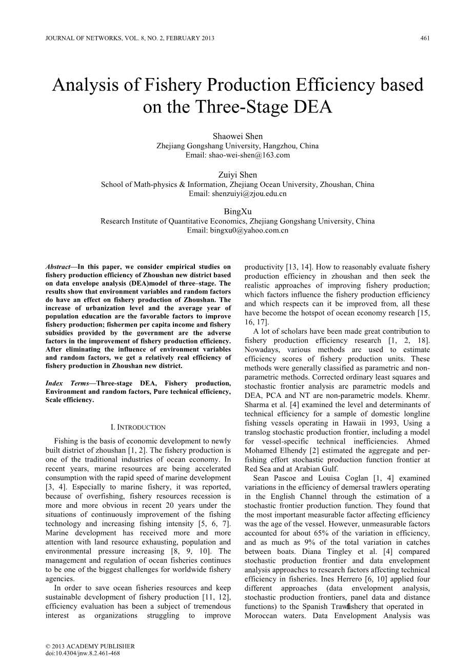 基于三阶段DEA的渔业生产效率分析外文翻译资料
