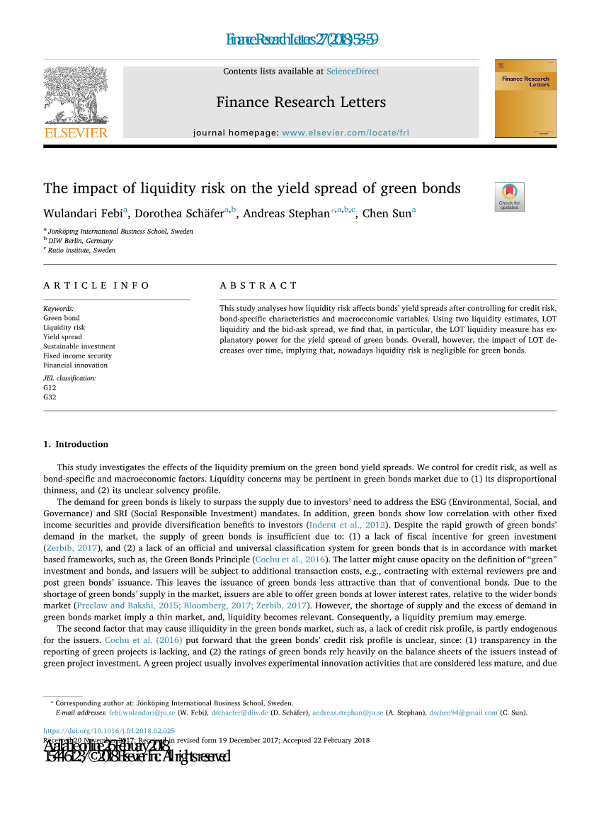 关键词:绿色债券;流动性风险;收益率差价;可持续投资;固定收益证券;金融创新