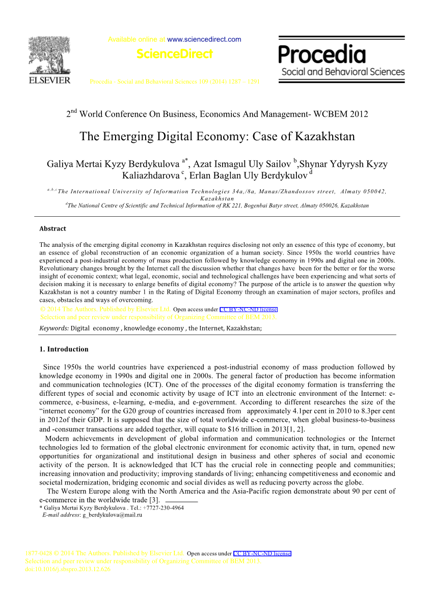关键词:数字经济,知识经济,互联网,哈萨克斯坦;