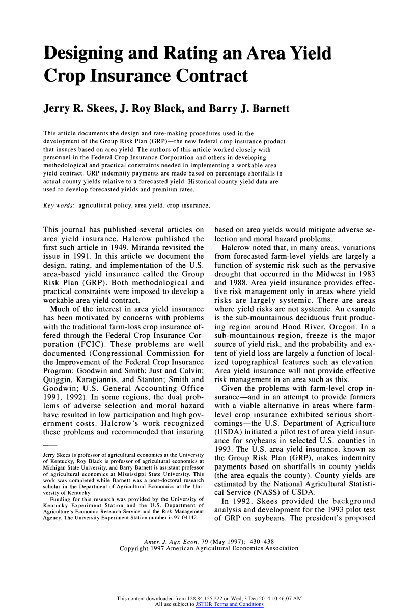 Jerry R. Skees, J. Roy Black, and Barry J. Barnett