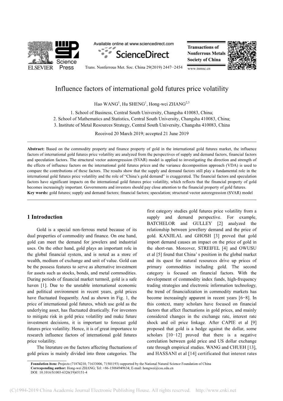 摘要:从黄金的商品属性和金融属性出发,以国际黄金期货市场为研究对象,从供求因素、金融因素和投机因素3个方面分析国际黄金期货价格波动的影响因素。应用结构向量自回归(SVAR)模型研究影响因素对国际黄金期货价格作用的方向和强度,并用方差分解法(VDA)比较这些因素的贡献度。结果表明,供需因素仍然对国际黄金期货价格波动起基础性作用,而'中国黄金需求'在国际黄金期货市场中的作用被夸大。金融因素和投机因素对国际黄金期货价格波动有显著影响,这一结果反映出黄金的金融属性变得日益重要。政府与投资者应当高度关注黄金期货的金融属性。