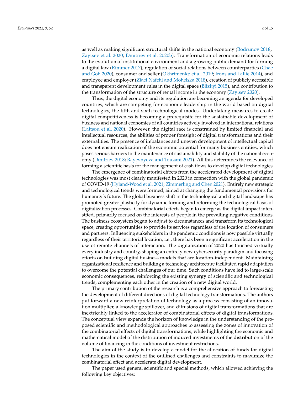 预测技术、新模式和经济的发展成为了在21世纪,预测技术、新模式和经济的发展成为全球科学界的焦点(主要的全球趋势已在一些研究中得到考虑)。在一些研究中被考虑(Al Muhayfith and Shaiti 2020; Bataev 2018; Lynn等人,2020)。科学范式也正在被全球数字压力所改变。 这是其在周围空间不断动态的原因(Bailey等人,2020年。 Clegg 2011)。科学家们不能不注意到经济发展中的失衡、新兴趋势的动荡,以及基本条件和前提条件的多变。 作者依靠数字经济的数学模型的基本概念 在当代经济学家的作品中提出(Galbraith and Hodgson 2018; DeGaetano 2018; Yakovlev et al. 2019)。