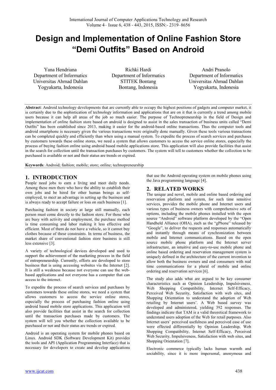 Key words: Android; fashion; mobile; store; online; technopreneurship