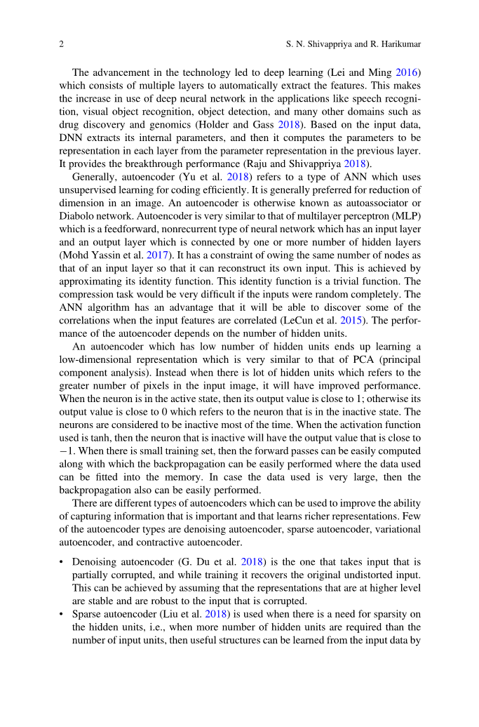 一般来说,自动编码器(Yu et al. 2018)指的是一种利用无监督学习高效编码的ANN。它通常是首选的降维图像。自动编码器也称为自动联想器或空竹网络。自编码器与多层感知器(multilayer perceptron, MLP)非常相似,多层感知器是一种前馈的、非递归的神经网络,它有一个输入层和一个或多个隐藏层连接的输出层(Mohd Yassin et al. 2017)。它有一个约束,即拥有与输入层相同数量的节点,这样它就可以重构自己的输入。这是通过近似它的恒等函数来实现的。这个恒等函数是一个平凡函数。如果输入完全是随机的,那么压缩任务将非常困难。ANN算法的优势在于,当输入特征相关联时,它能够发现一些相关性(LeCun et al. 2015)。自动编码器的性能取决于隐藏单元的数量。