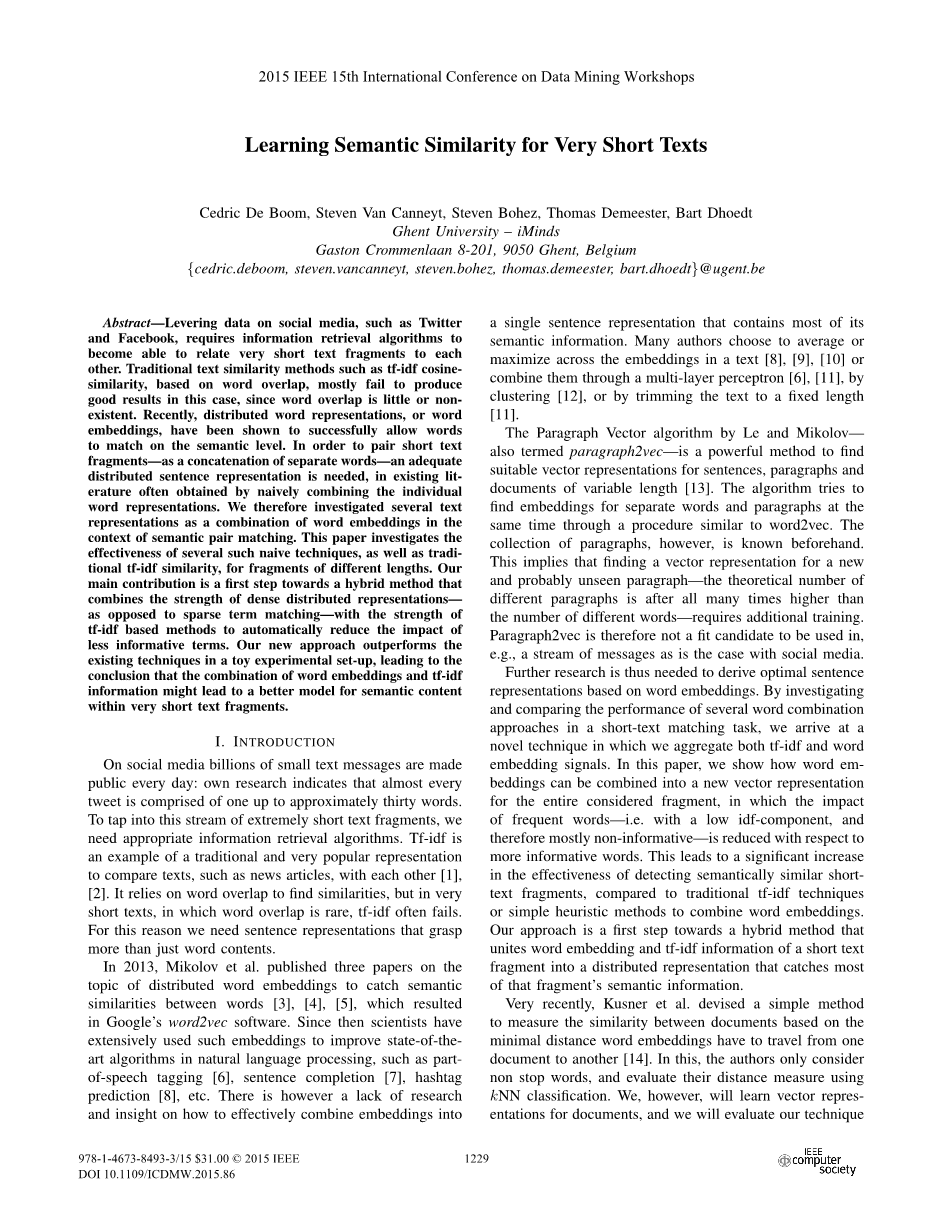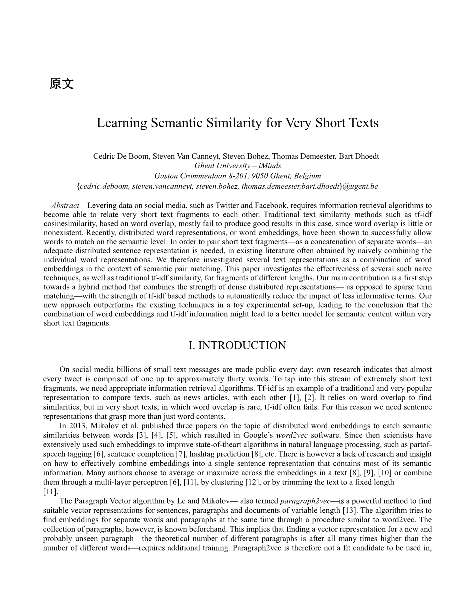 超短文本语义相似度的学习外文翻译资料 2023-01-28 11:29:35 英语原文共 6 页,剩余内容已隐藏,支付完成后下载完整资料 英语译文共 23 页,剩余内容已隐藏,支付完成后下载完整资料 资料编号:[254385],资料为PDF文档或Word文档,PDF文档可免费转换为Word 您需要先支付 30元 才能查看全部内容!立即支付 发小红书推广免费获取该资料资格。点击链接进入获取推广文案即可: Ai一键组稿 | 降AI率 | 降重复率 | 论文一键排版 PREVIOUS NEXT 您可能感兴趣的文章 基于B/S架构的高校就业信息管理系统的设计与实现开题报告 基于scrapy爬虫技术的电商平台数据分析系统文献综述 基于热点查询的地理栅格数据分析算法研究文献综述 交通数据中的数据优化文献综述 气象云图数据的解析与展示组件的开发文献综述 圆形图章的配准与鉴别研究文献综述 基于SSM框架的博客系统文献综述 基于Python的药用菊花指标预测分析文献综述 塔吊脚手架网设计与开发(后台管理系统)文献综述 高校大学生创新能力培养大数据分析与平台设计文献综述