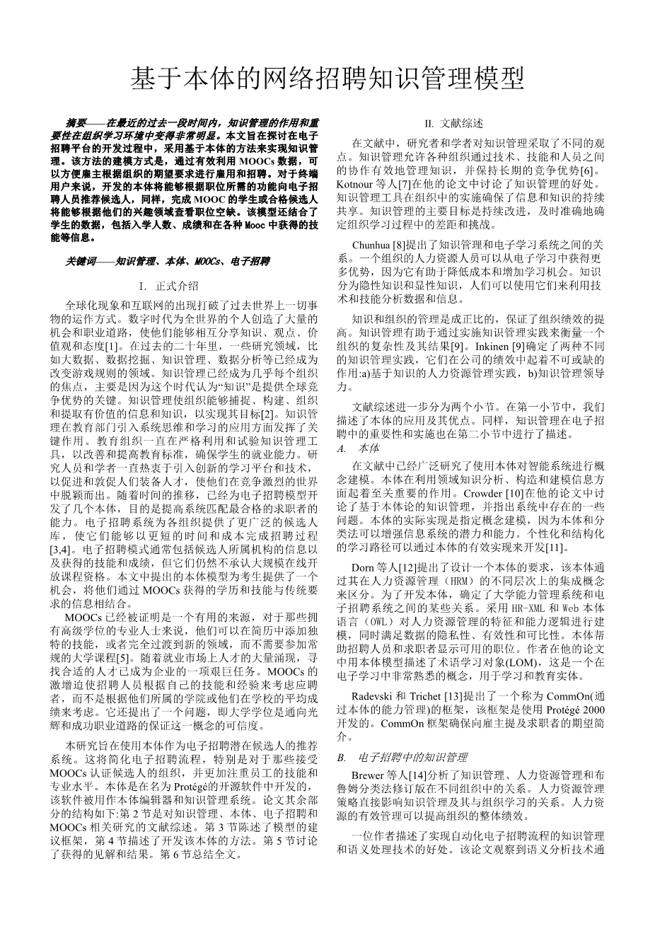 基于本体的网络招聘知识管理模型外文翻译资料 2023-02-03 11:01:41 英语原文共 5 页,剩余内容已隐藏,支付完成后下载完整资料 英语译文共 4 页,剩余内容已隐藏,支付完成后下载完整资料 资料编号:[260435],资料为PDF文档或Word文档,PDF文档可免费转换为Word 您需要先支付 30元 才能查看全部内容!立即支付 发小红书推广免费获取该资料资格。点击链接进入获取推广文案即可: Ai一键组稿 | 降AI率 | 降重复率 | 论文一键排版 PREVIOUS NEXT 您可能感兴趣的文章 基于B/S架构的高校就业信息管理系统的设计与实现开题报告 基于scrapy爬虫技术的电商平台数据分析系统文献综述 基于热点查询的地理栅格数据分析算法研究文献综述 交通数据中的数据优化文献综述 气象云图数据的解析与展示组件的开发文献综述 圆形图章的配准与鉴别研究文献综述 基于SSM框架的博客系统文献综述 基于Python的药用菊花指标预测分析文献综述 塔吊脚手架网设计与开发(后台管理系统)文献综述 高校大学生创新能力培养大数据分析与平台设计文献综述