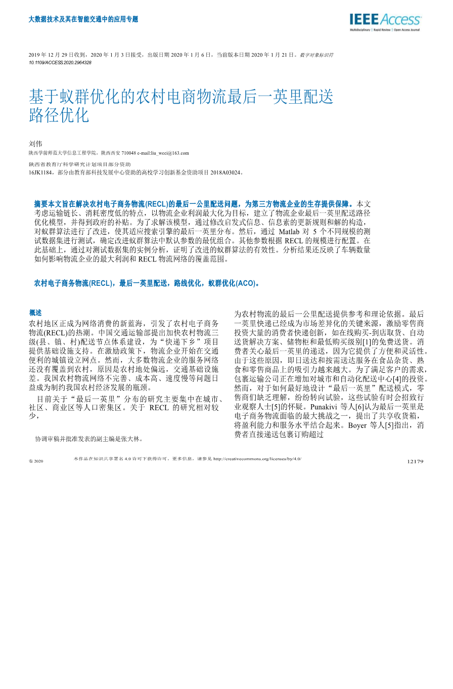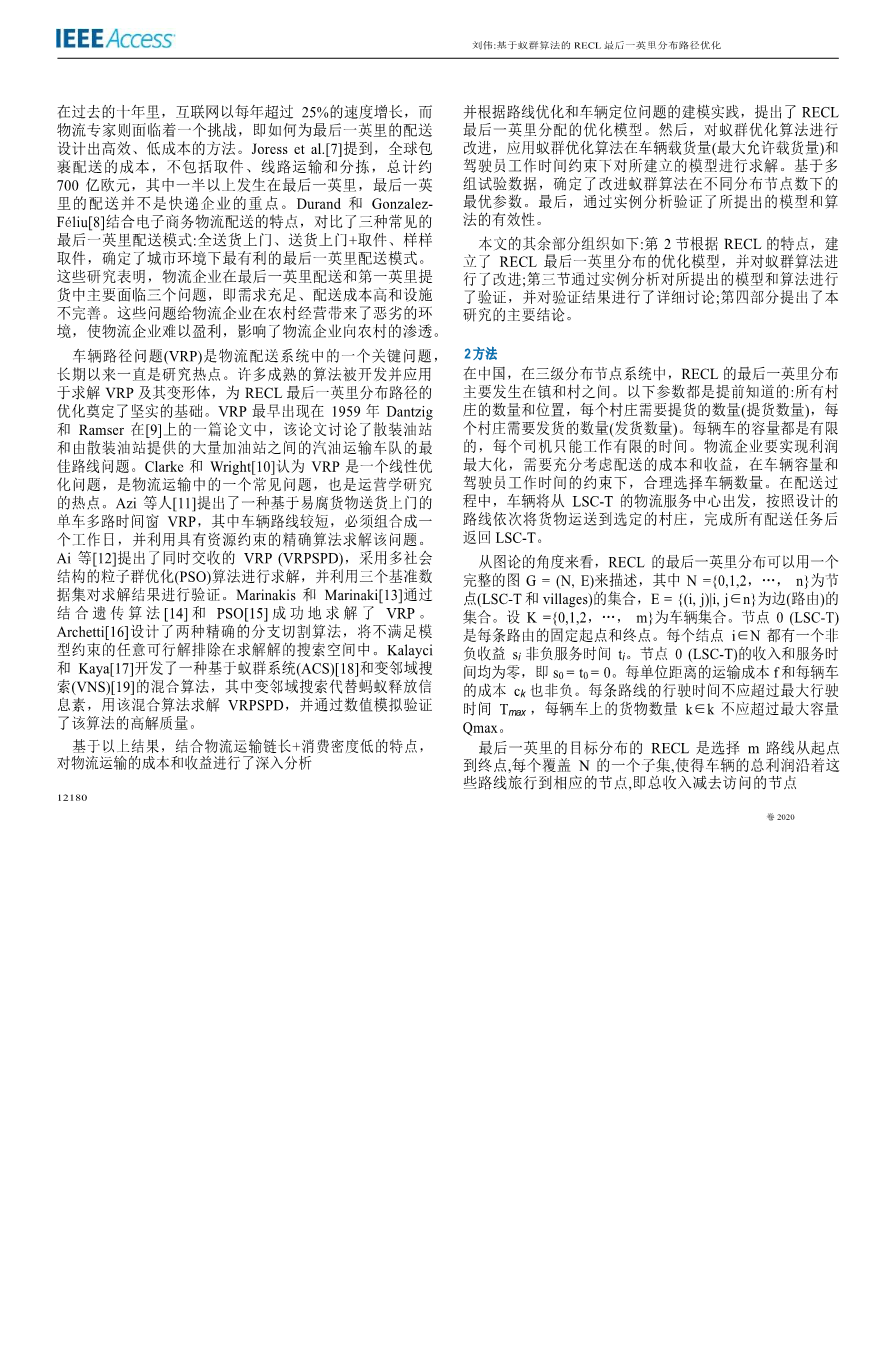 基于蚁群优化的农村电商物流最后- -英里配送 路径优化外文翻译资料