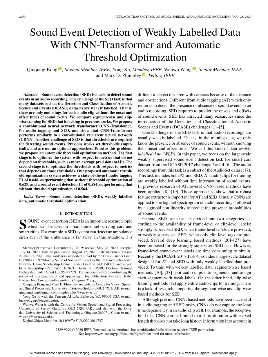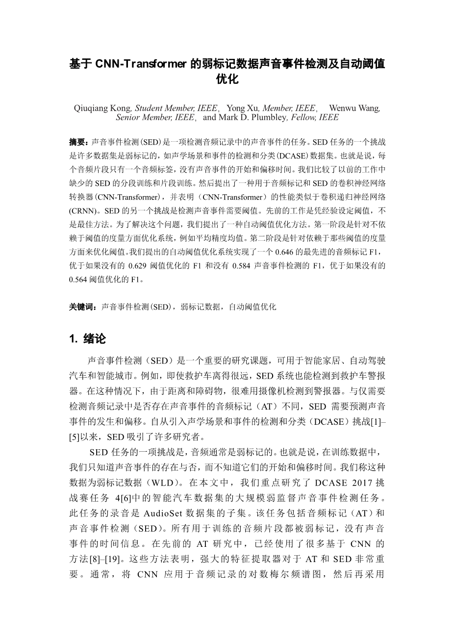 基于CNN-Transformer的弱标记数据声音事件检测及自动阈值优化外文翻译资料 2023-02-06 08:50:48 英语原文共 11 页,剩余内容已隐藏,支付完成后下载完整资料 英语译文共 22 页,剩余内容已隐藏,支付完成后下载完整资料 资料编号:[259481],资料为PDF文档或Word文档,PDF文档可免费转换为Word 您需要先支付 30元 才能查看全部内容!立即支付 发小红书推广免费获取该资料资格。点击链接进入获取推广文案即可: Ai一键组稿 | 降AI率 | 降重复率 | 论文一键排版 PREVIOUS NEXT 您可能感兴趣的文章 基于B/S架构的高校就业信息管理系统的设计与实现开题报告 基于scrapy爬虫技术的电商平台数据分析系统文献综述 基于热点查询的地理栅格数据分析算法研究文献综述 交通数据中的数据优化文献综述 气象云图数据的解析与展示组件的开发文献综述 圆形图章的配准与鉴别研究文献综述 基于SSM框架的博客系统文献综述 基于Python的药用菊花指标预测分析文献综述 塔吊脚手架网设计与开发(后台管理系统)文献综述 高校大学生创新能力培养大数据分析与平台设计文献综述