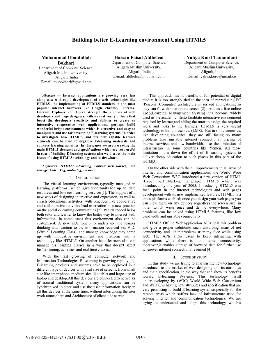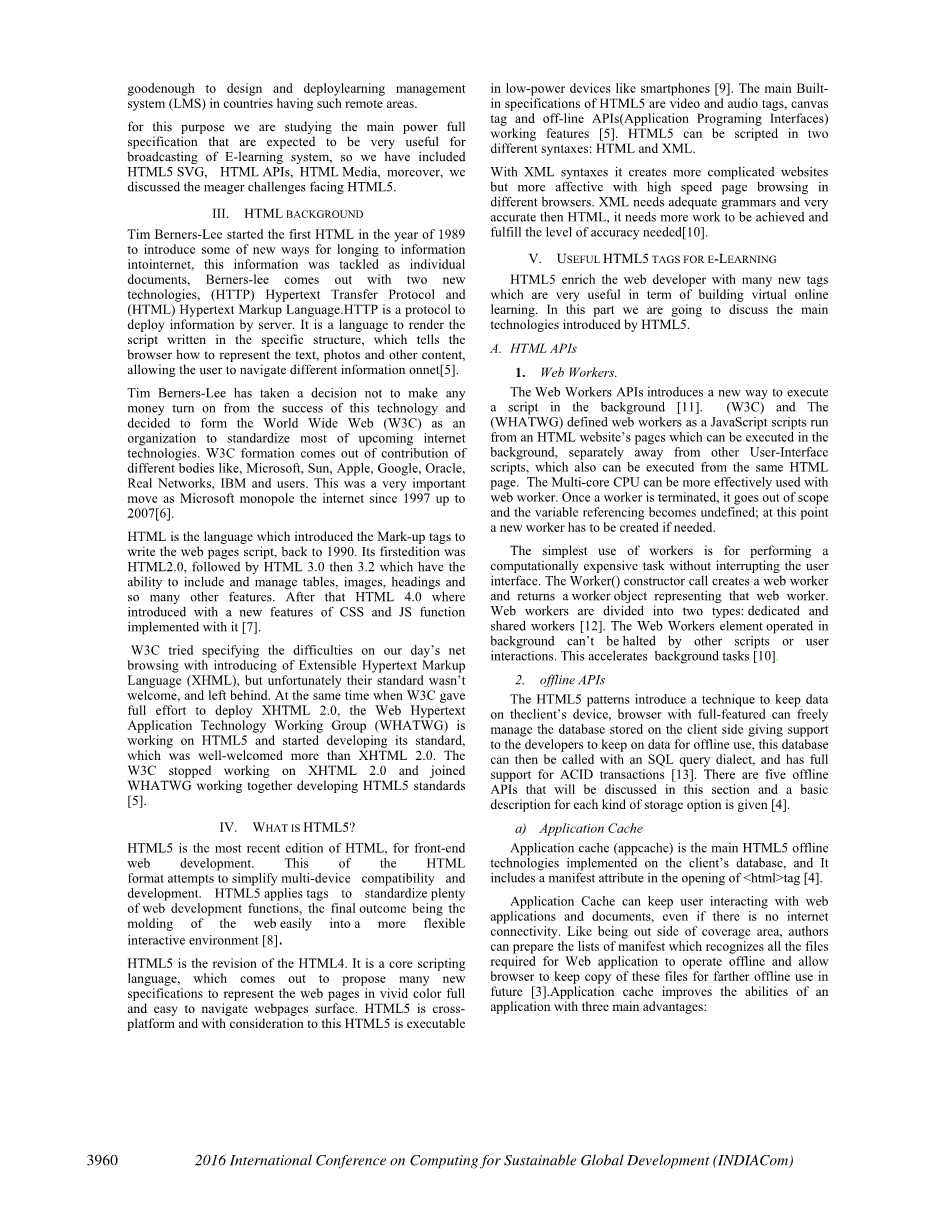 在这项研究中,我们试图分析引入到网页设计市场的新技术及其属性和主要规范,从而显示其对电子学习系统的好处。 这种技术仍在由(W3C)万维网联盟和WIDK开发,具有非常有希望建立电子学习系统的新属性和规范,特别是对于缺乏用于服务互联网和通信技术的基础设施的偏远地区 。 我们正试图理解并采用这种技术,这足以在具有这种偏远地区的国家设计和部署学习管理系统(LMS)。 为了这个目的,我们正在研究主要的功率全规格,预计对于电子学习系统的广播非常有用,所以我们已经包括HTML5 SVG,HTNAL API,媒体,此外,我们讨论了HTML5面临的微薄挑战。