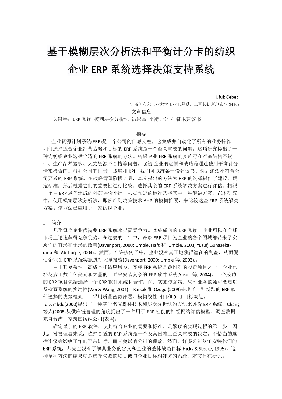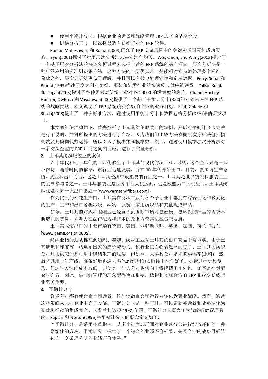 基于模糊层次分析法和平衡计分卡的纺织企业ERP系统选择决策支持系统外文翻译资料 2023-02-27 09:17:12 英语原文共 12 页,剩余内容已隐藏,支付完成后下载完整资料 英语译文共 17 页,剩余内容已隐藏,支付完成后下载完整资料 资料编号:[405804],资料为PDF文档或Word文档,PDF文档可免费转换为Word 您需要先支付 30元 才能查看全部内容!立即支付 发小红书推广免费获取该资料资格。点击链接进入获取推广文案即可: Ai一键组稿 | 降AI率 | 降重复率 | 论文一键排版 PREVIOUS NEXT 您可能感兴趣的文章 基于B/S架构的高校就业信息管理系统的设计与实现开题报告 基于scrapy爬虫技术的电商平台数据分析系统文献综述 基于热点查询的地理栅格数据分析算法研究文献综述 交通数据中的数据优化文献综述 气象云图数据的解析与展示组件的开发文献综述 圆形图章的配准与鉴别研究文献综述 基于SSM框架的博客系统文献综述 基于Python的药用菊花指标预测分析文献综述 塔吊脚手架网设计与开发(后台管理系统)文献综述 高校大学生创新能力培养大数据分析与平台设计文献综述