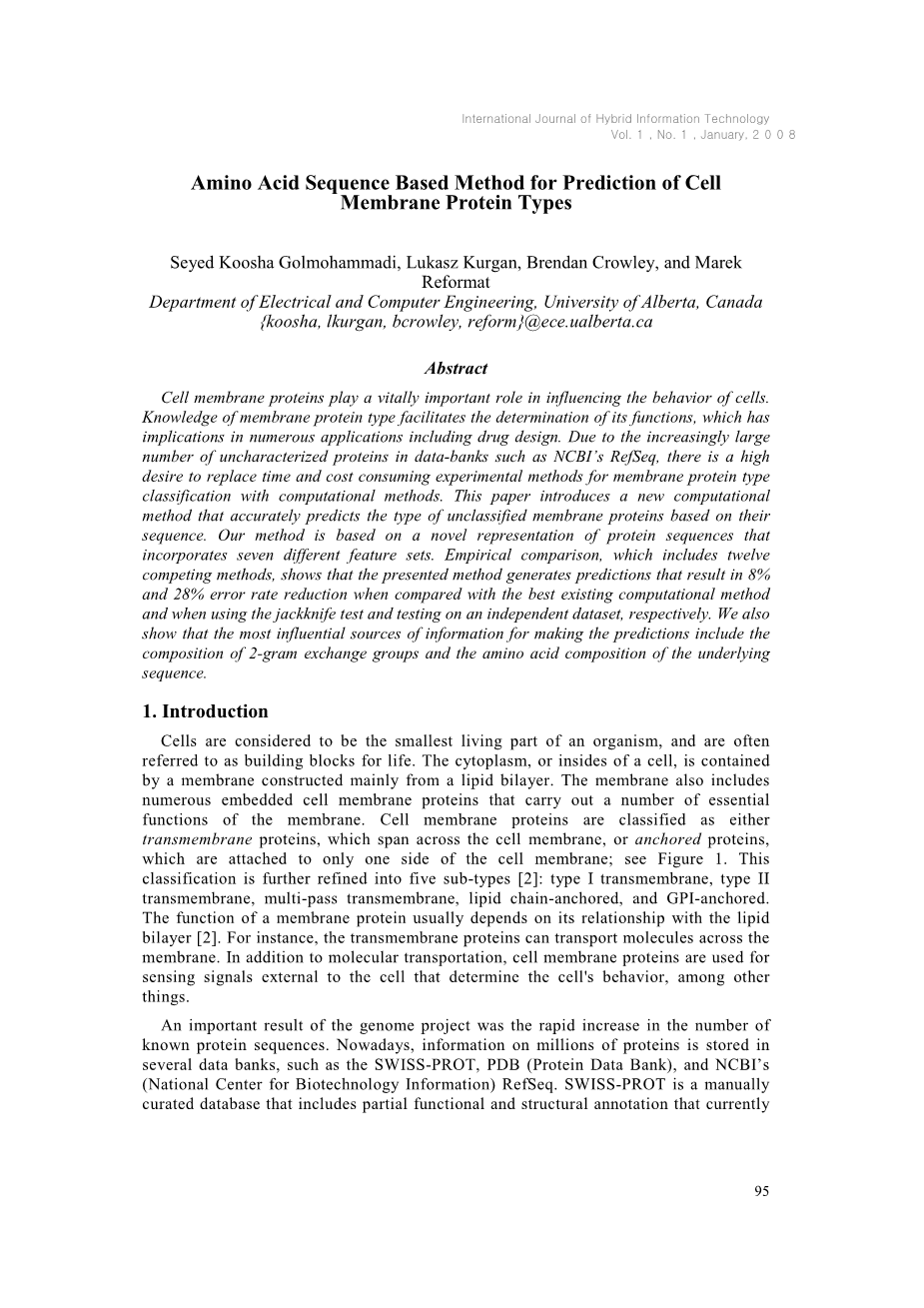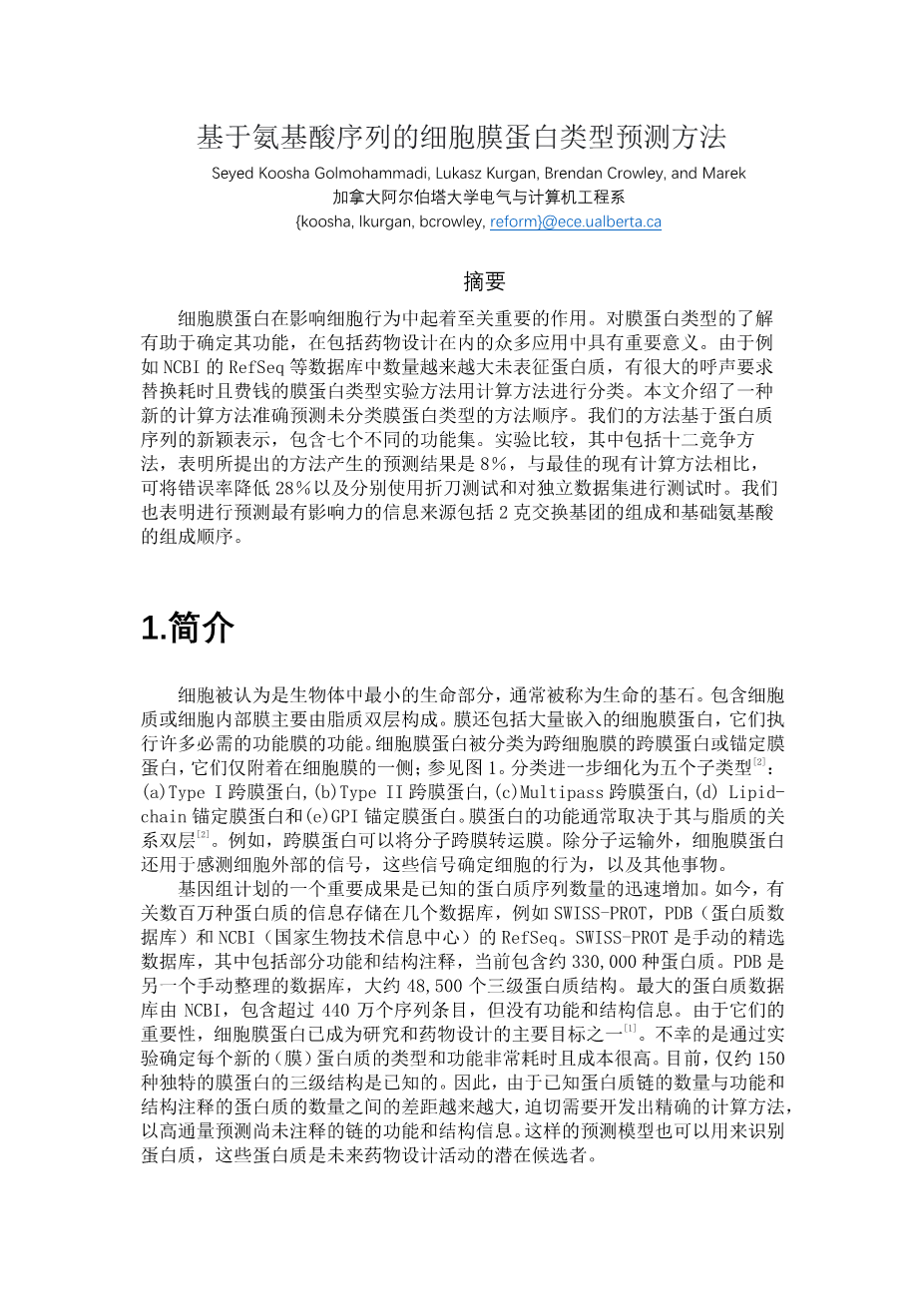 基于氨基酸序列的细胞膜蛋白类型预测方法外文翻译资料 2023-02-27 09:37:34 英语原文共 16 页,剩余内容已隐藏,支付完成后下载完整资料 英语译文共 13 页,剩余内容已隐藏,支付完成后下载完整资料 资料编号:[405802],资料为PDF文档或Word文档,PDF文档可免费转换为Word 您需要先支付 30元 才能查看全部内容!立即支付 发小红书推广免费获取该资料资格。点击链接进入获取推广文案即可: Ai一键组稿 | 降AI率 | 降重复率 | 论文一键排版 PREVIOUS NEXT 您可能感兴趣的文章 基于B/S架构的高校就业信息管理系统的设计与实现开题报告 基于scrapy爬虫技术的电商平台数据分析系统文献综述 基于热点查询的地理栅格数据分析算法研究文献综述 交通数据中的数据优化文献综述 气象云图数据的解析与展示组件的开发文献综述 圆形图章的配准与鉴别研究文献综述 基于SSM框架的博客系统文献综述 基于Python的药用菊花指标预测分析文献综述 塔吊脚手架网设计与开发(后台管理系统)文献综述 高校大学生创新能力培养大数据分析与平台设计文献综述