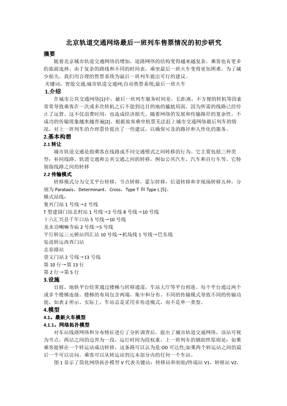 北京轨道交通网络最后一班列车 售票情况的初步研究外文翻译资料