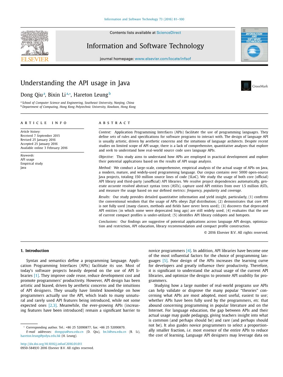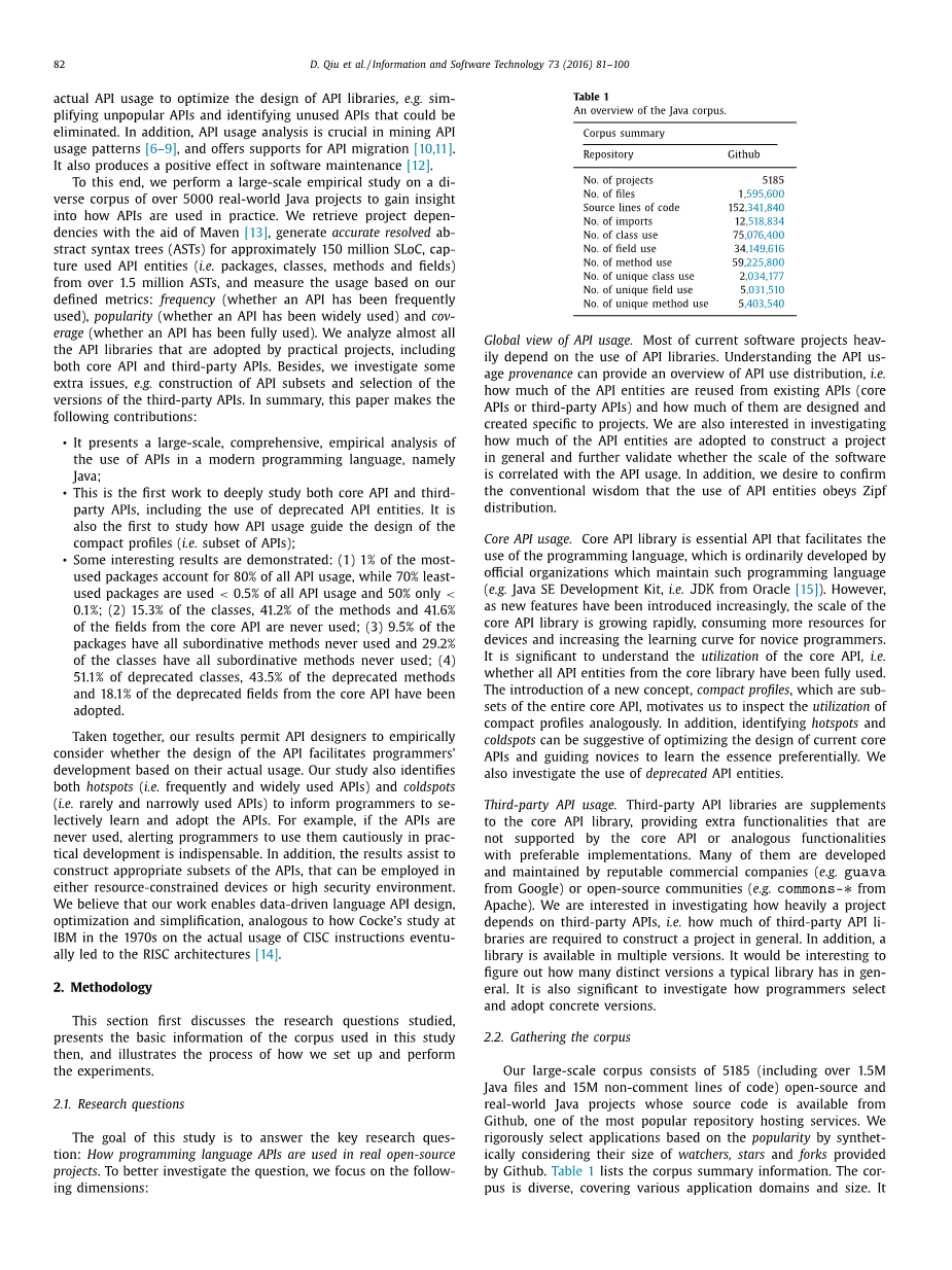 ·它提出了一个大规模的,全面的,对一个现代的编程语言的API的使用实证分析,即java;