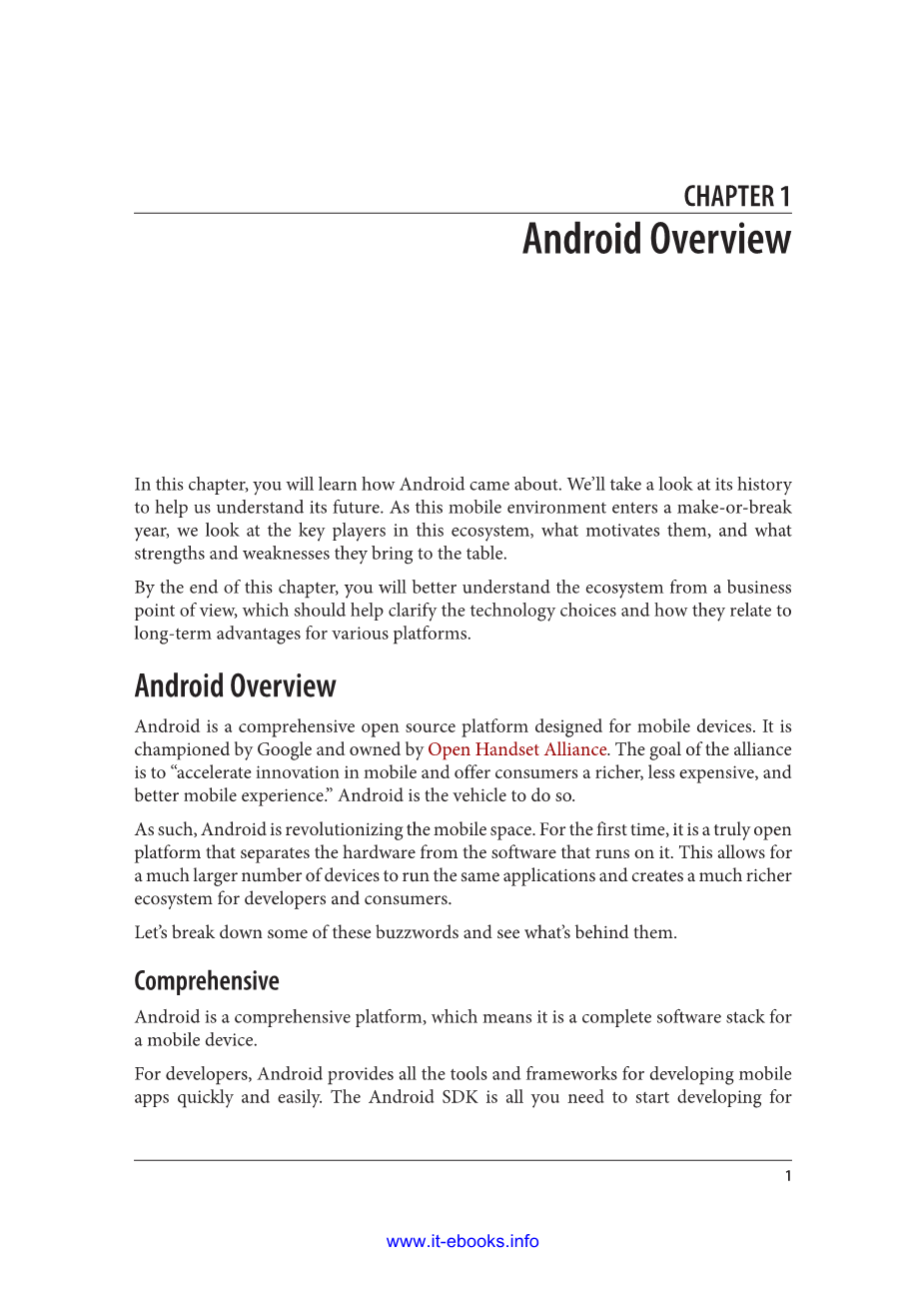 在这个章节,你将了解安卓操作系统的由来。通过了解安卓操作系统的历史有助于我们来理解它的未来。在这个移动领域正值群雄争霸的关键时期,所有我们要研究这个移动领域这一生态系统中的一些关键角色,那些激励了它们的发展的因素,而他又给这个系统带来了什么优势和缺点。