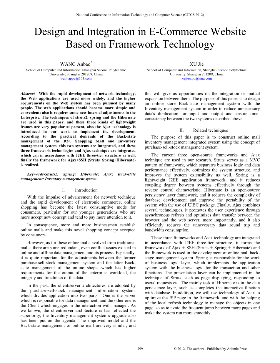 基于框架技术的电子商务网站的设计和集成