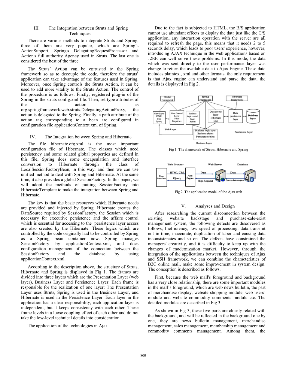 三个开源的框架和Ajax技术在我们的研究中被使用。Struts扮演的是MVC模式的框架,它有效地把业务逻辑和数据性能分开,优化系统建构,有效减少系统和反向控制特性之间的耦合度。
