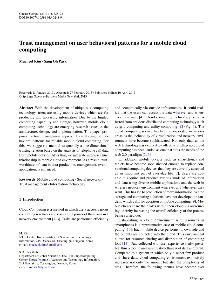 随着通信环境和网络技术的发展,越来越多的人开始表达自己的意见并与移动设备共享信息。然而,这之中存在明显的限制,例如受限的计算能力和存储的匮乏,因此,移动云计算正在出现各式各样的研究问题。本文提出了可靠的数据集成,管理和应用在移动云计算环境中的信任管理方法。为了提供值得信赖的信息,本研究试图分析移动环境中用户之间的交互。为此,它建立了一