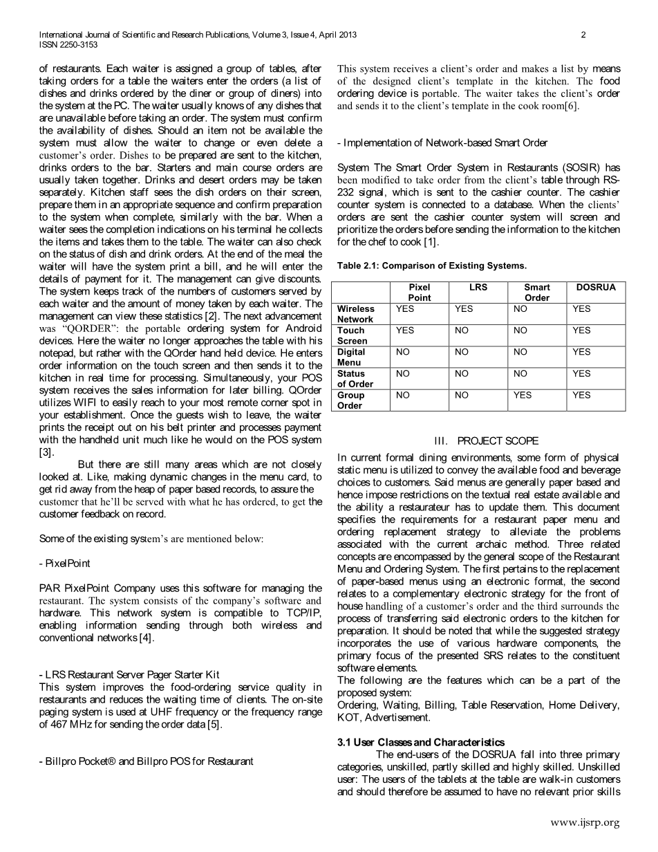 但仍有很多地方没有仔细研究。就像在菜单卡上进行动态变化一样,为了摆脱基于纸张的记录,以确保客户得到他所订购的服务,以获得有记录的客户反馈。下面提到一些现有的系统: