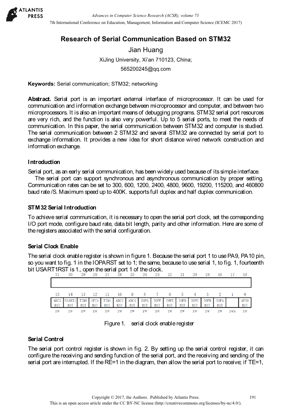 - Chen Feng, Wu Yubin, Cao Danhua. Design of EEG signal acquisition instrument based on STM32 and USB virtual serial port, [J], instrument technology and sensor.2016,12:65-68.
