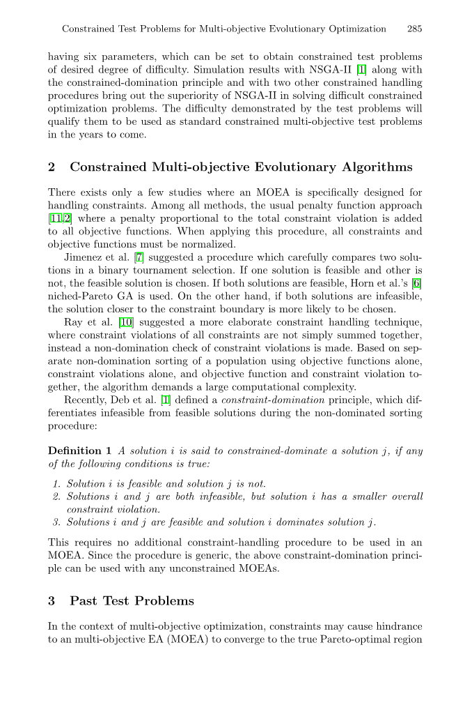 最近,deb等人[1]确立了约束支配原则,该原则在非支配排序过程中与可行的解决办法相区别: