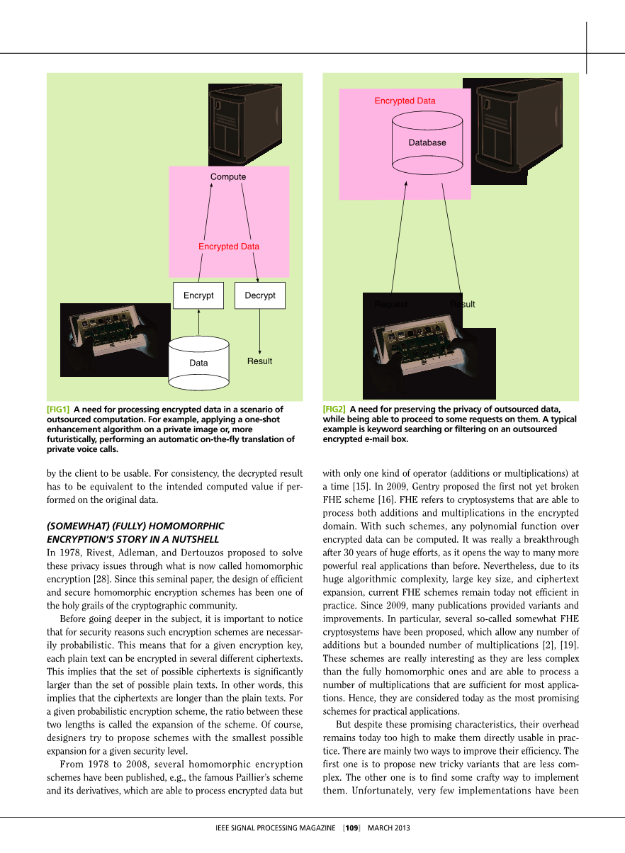 1978年,Rivest,Adleman和Dertouzos提出通过现在称为同态加密来解决这些隐私问题[28]。 从这篇具有启发性的论文开始,高效和安全的同形加密方案的设计已经成为加密社区的圣杯之一。