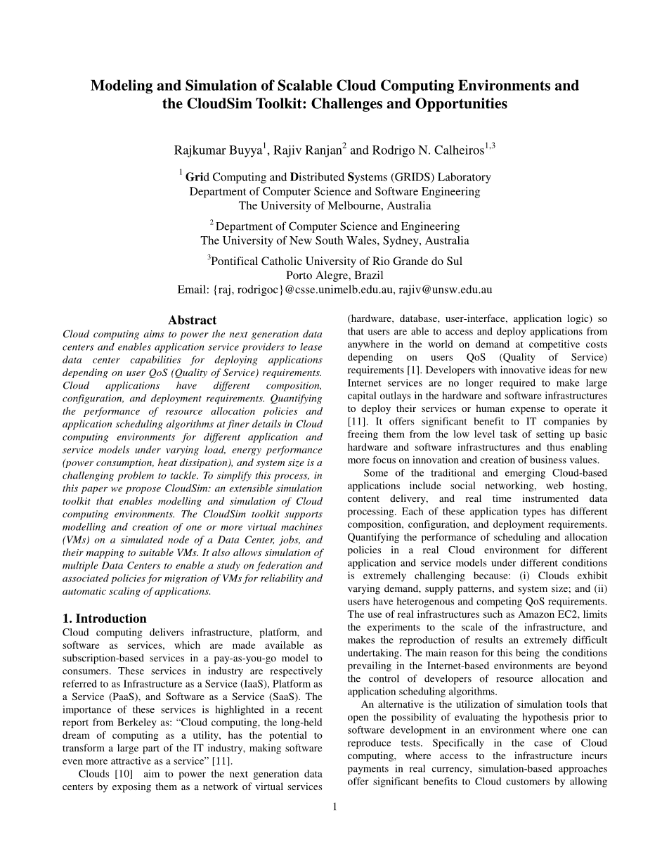 可扩展云计算环境和CloudSim工具包的建模和模拟:挑战和机遇