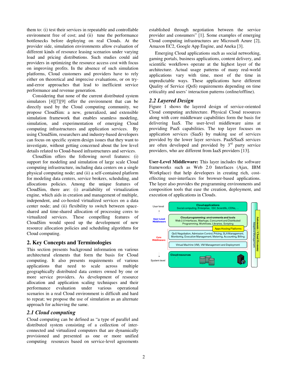本节介绍构成云计算基础的各种架构元素的背景信息。它还提出了需要扩展到由一个或多个服务提供商拥有的多个地理上分布的数据中心的各种应用的需求。由于在真实云环境中的各种操作情景下的资源分配和应用程序缩放技术及其性能评估的开发是困难和难以重复;我们建议使用模拟作为实现相同的替代方法。