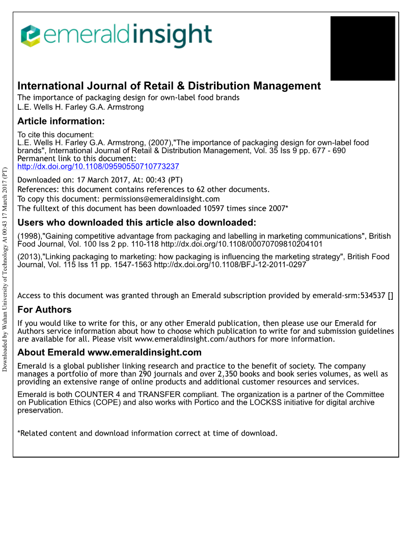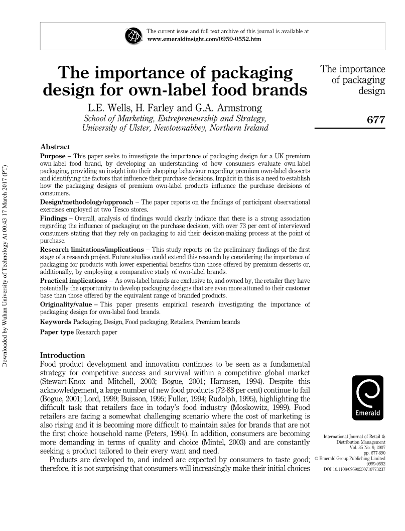 L.E. Wells H. Farley G.A. Armstrong, (2007),'包装设计对于自有标签食品的重要性', 国际零售与分销管理杂志, 2007,35(9):677-690