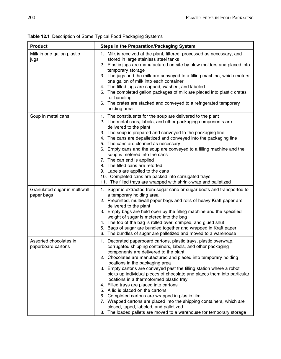 表12.1一些典型食品包装系统的描述 |