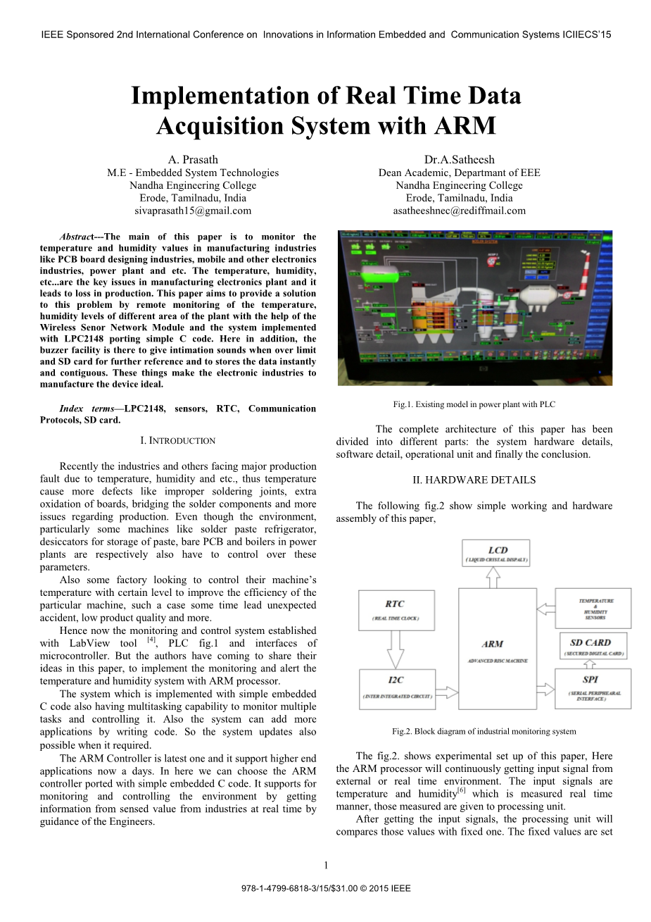 摘要:本文旨在监测PCB板设计工业,移动电子和其他电子厂以及电源等制造行业的温湿度值。温度,湿度等是制造电子厂导致生产损失的关键性因素。本文旨在基于无线传感器网络模块和LPC2148主控芯片来移植简单C代码以实现系统远程监控工厂不同区域的温度,湿度水平从而解决此问题。此外,这里的蜂鸣器设备可以在温湿度值超限和SD卡存储故障时发出报警声,以便提供更进一步的参考并且使系统立即连续地存储数据。这些装置使得电子制造设备行业运行地更良好。
