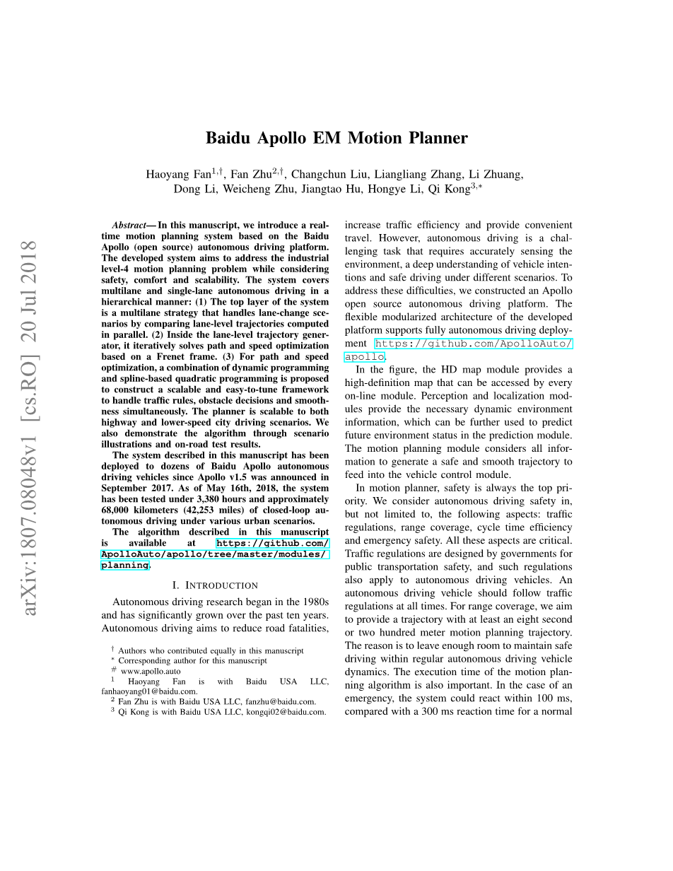 百度阿波罗EM运动规划师外文翻译资料 2023-01-17 10:27:33 英语原文共 15 页,剩余内容已隐藏,支付完成后下载完整资料 资料编号:[238546],资料为PDF文档或Word文档,PDF文档可免费转换为Word 您需要先支付 30元 才能查看全部内容!立即支付 发小红书推广免费获取该资料资格。点击链接进入获取推广文案即可: Ai一键组稿 | 降AI率 | 降重复率 | 论文一键排版 PREVIOUS NEXT 您可能感兴趣的文章 基于模型预测控制的PHEV能量管理策略研究文献综述 承载200kg电动轮设计文献综述 中高级轿车液力自动变速器设计及控制策略分析文献综述 东风K74M悬架系统设计文献综述 纯电动6120BEV旅游客车底盘总布置设计文献综述 能量回收型减震器设计与仿真文献综述 轻型轿车制动系统的设计文献综述 燃料电池客车总体设计开题报告 东风K74M转向系统设计开题报告 大众高尔夫轿车制动系统设计文献综述