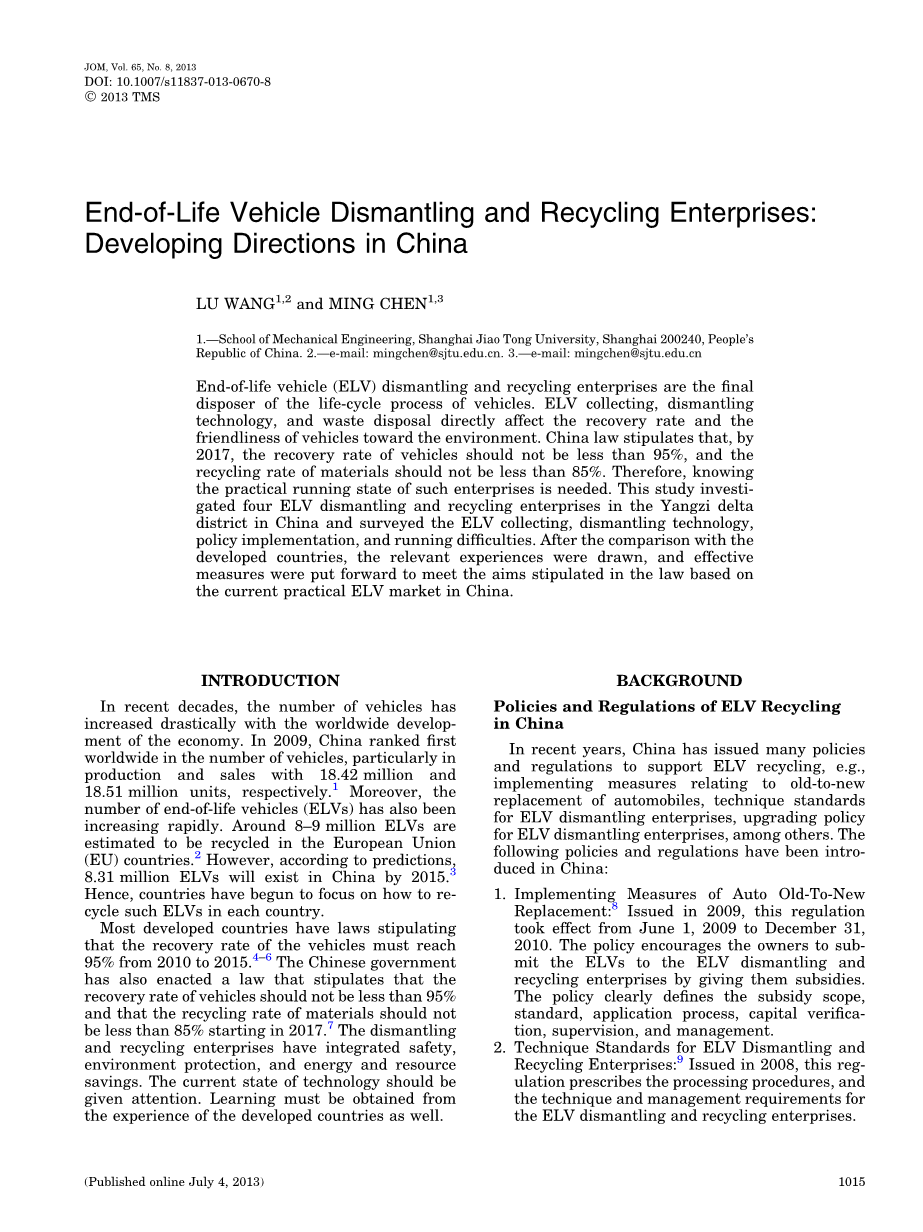汽车产量的增长增加了每年报废车辆的数量。报废汽车传统处理方法包括拆除、分解和填埋处置。 “3 r (减少、重用和回收)原则”已经越来越多地用于处理报废汽车,特别是弱电部分,以促进可持续发展。 处理报废车的第一步是拆除, 然而车辆的某些部分难以分解并在实践中使用。生产商责任扩大政策要求汽车制造商处理自己的报废汽车作为对社会的发展需求和责任。 拆除的设计方法可以有效解决现有困难。 这种方法还可以在汽车产品的设计提供指导。 本文说明了处理聚合物在仪表板的难度,聚合物的物理性质,容易分离和回收利用的机械方法。供应商必须依靠化学方法如热解。 因此,汽车设计师应该考虑汽车材料供应商的利益。 材料的有效使用和临终处理而不牺牲的原始性能要求是车辆应该的探索。