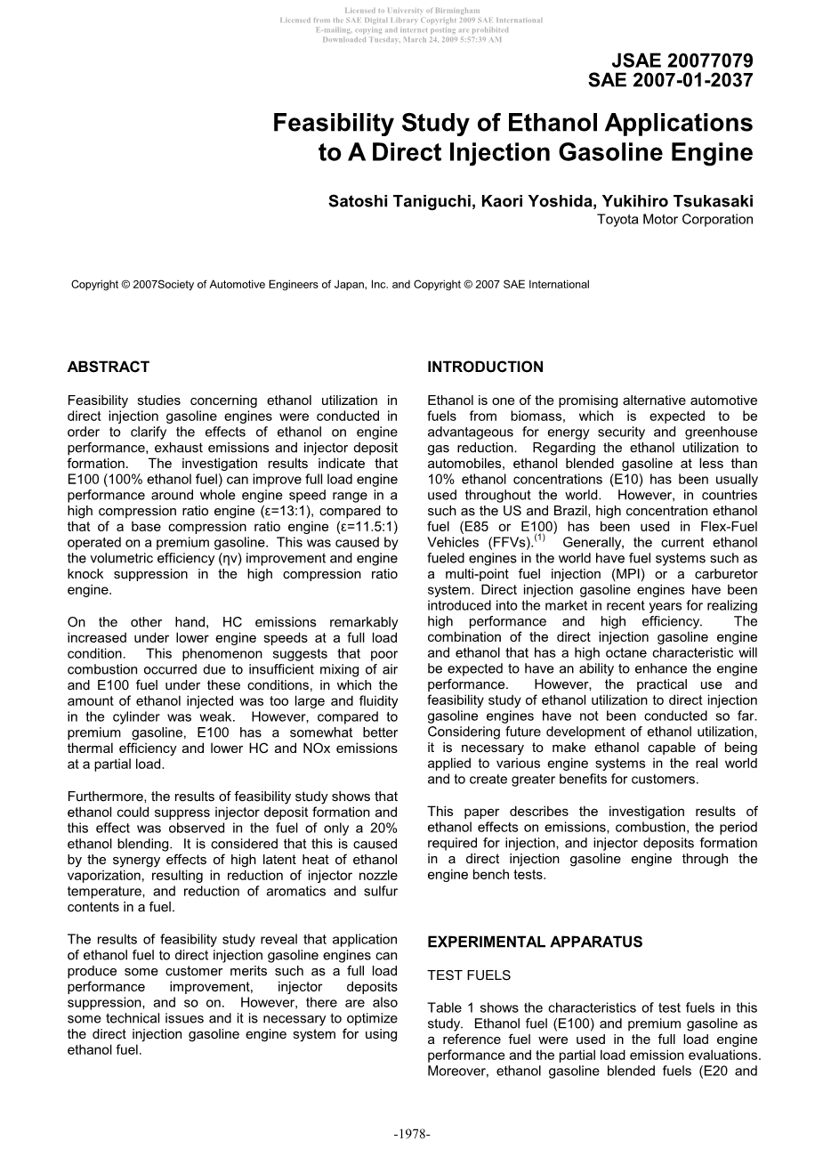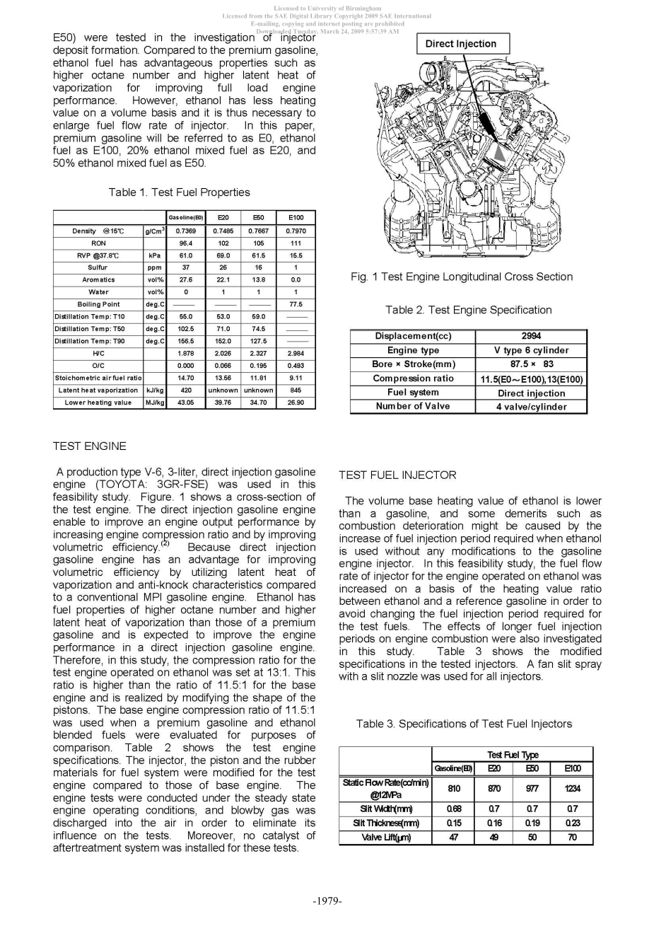 这些可行性研究是在为E100优化的特殊发动机上进行的,如更高的压缩比和避免喷射时间过长而使用的更大的喷嘴。然而在实际生活中,使用高浓度乙醇燃料的柔性燃料汽车已被大范围的引入市场。这些柔性燃料汽车必须兼容低浓度乙醇燃料和高浓度乙醇燃料。因此实际应用中鉴于没有转为E100优化的喷嘴,其喷射时间必定延长。在假设E100应用于柔性燃料汽车的情况下,对更长喷射时间的影响进行调查。