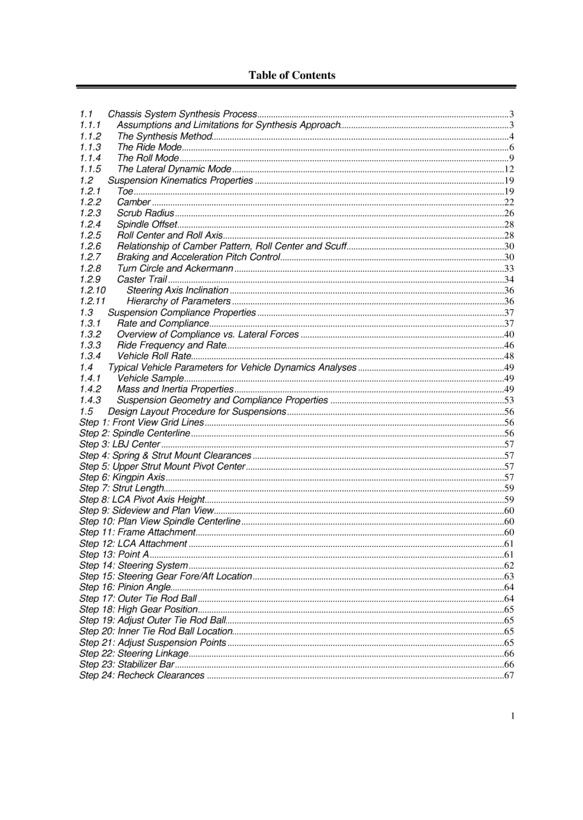 在讨论合成方法之前,应该概述一些假设和限制。首先是假设读者具有车辆方向控制机制和相关术语的基本知识。更具体地,该方法假定存在分析软件和实验室确定悬架运动学和顺应性,用于车辆方向控制的类似技术力学和测量技术以及覆盖(转弯)轮胎的力和力矩性质的数据库。隐含在这项技术是乘用车的常用概念模型。这些通常具有刚性悬挂质量,固定侧倾轴,悬挂运动学和影响方向控制的柔性特性特性以及作为滑移角的函数的至少轮胎横向力和对准扭矩的表示垂直载荷。这种最先进的技术并不完美。因此,最终设计的性能只能是一个合理近似所需的确切性能。因此,绩效目标被制定在术语范围,而不是精确值。诚然,本节中使用的骑行力学的描述因为该底盘设计过程的主要焦点是实现期望的方向控制属性。