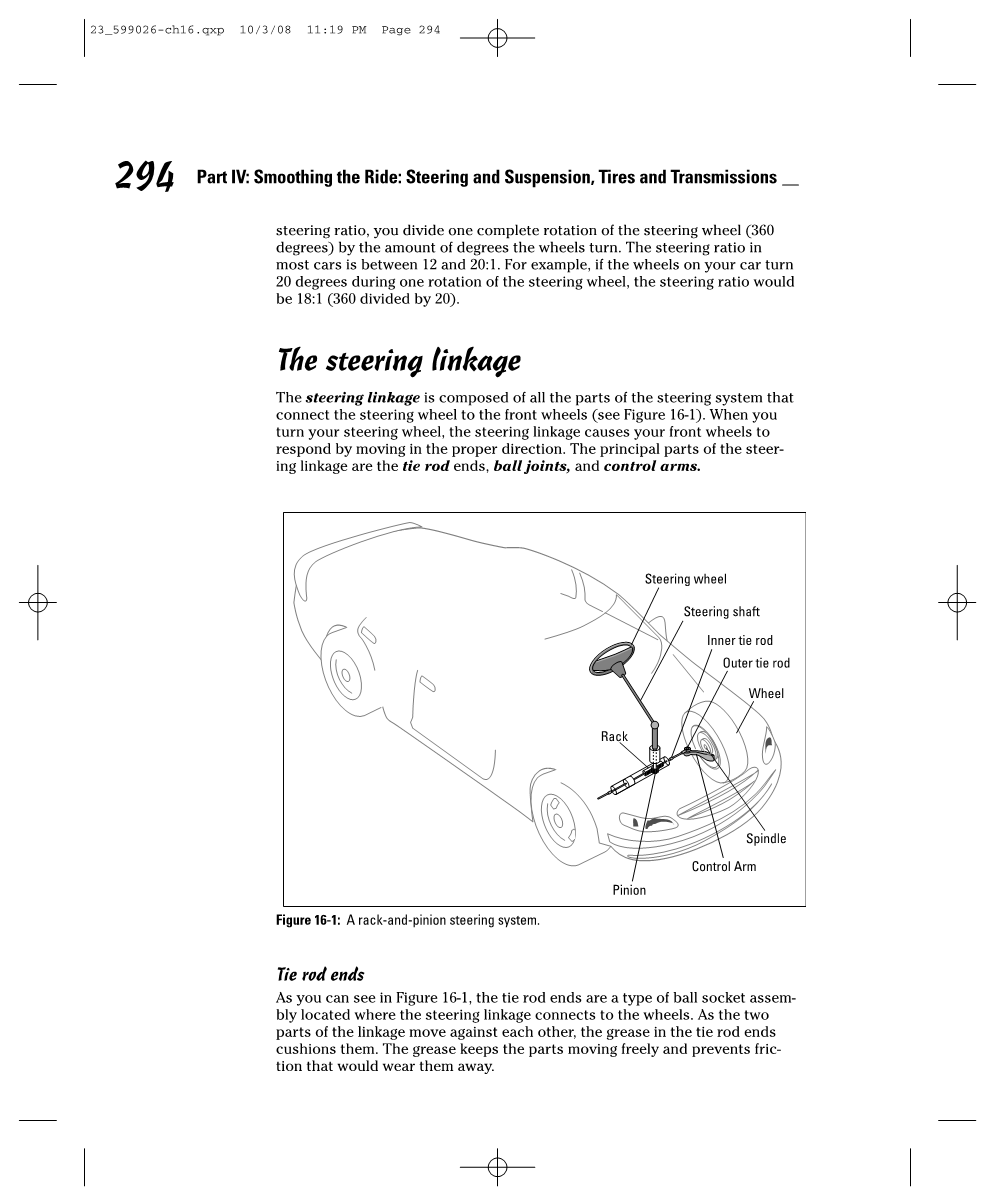 如图16-1所示,转向横拉杆是位于转向节与车轮连接位置之间的一种球窝组件。当连杆的两个部分相互移动时,转向横拉杆内的润滑脂可以起到缓冲作用。润滑脂使得零件可以自由移动,并防止可能引起磨损的摩擦。