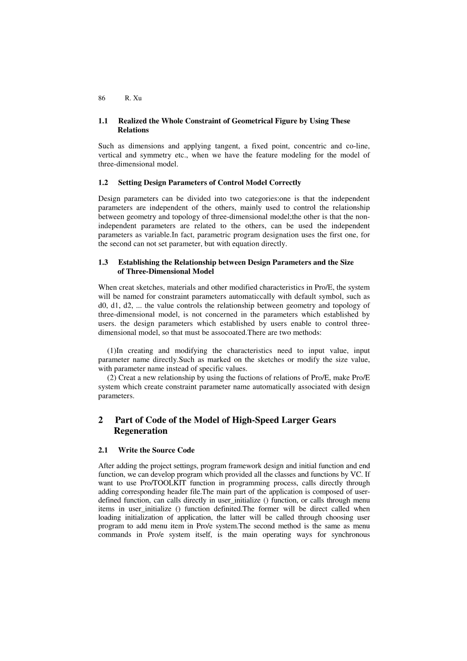 使用Pro / TOOLKIT二次开发程序可以实现已设计的三维模型的自动再生。部分代码的高速档齿轮再生模型如下: