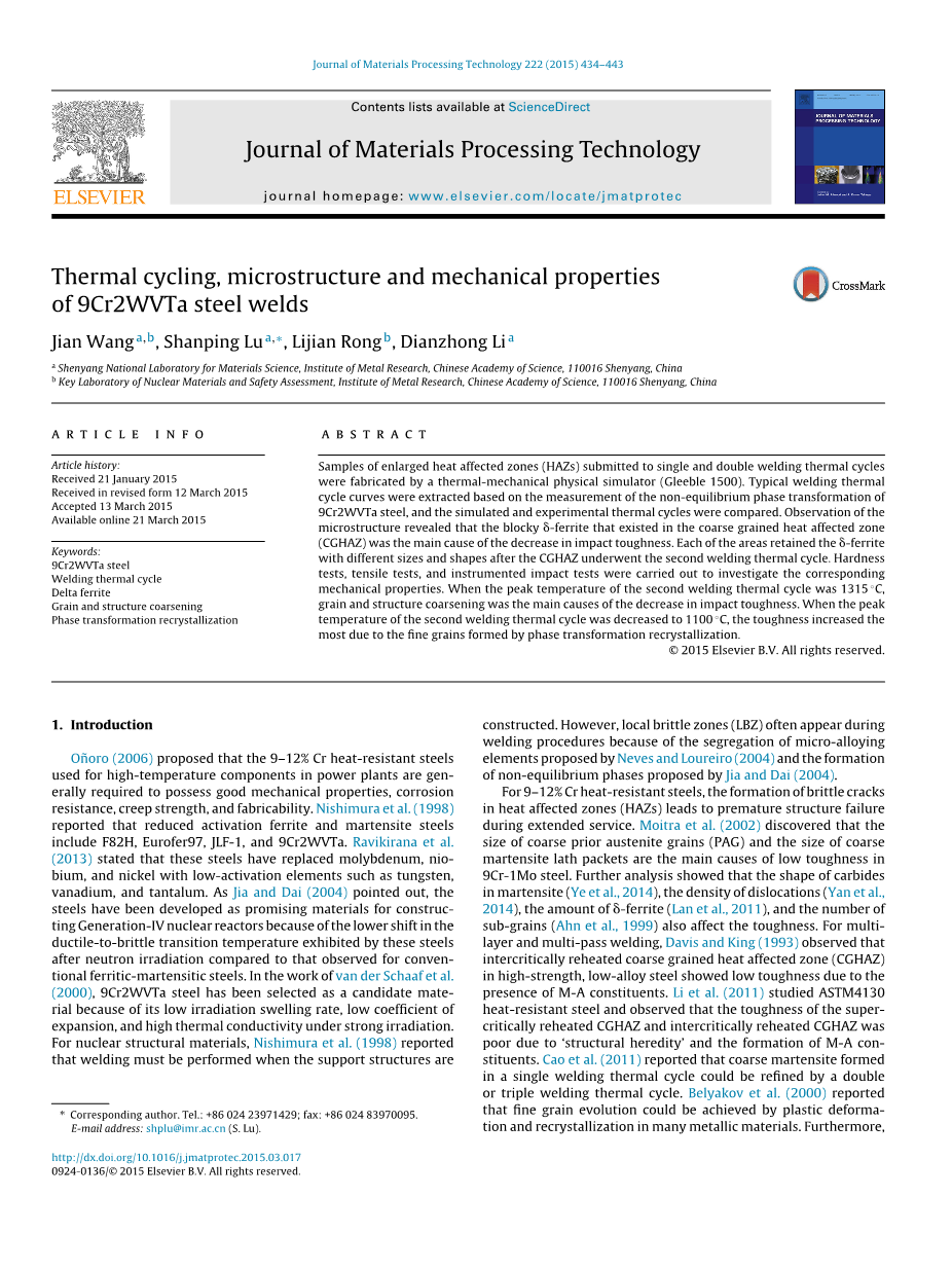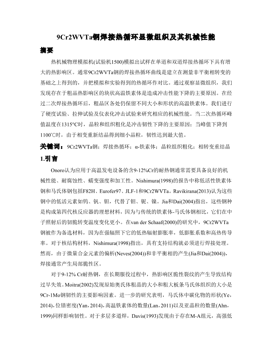 9Cr2WVTa钢焊搂热循环显微组织及其机械性能外文翻译资料