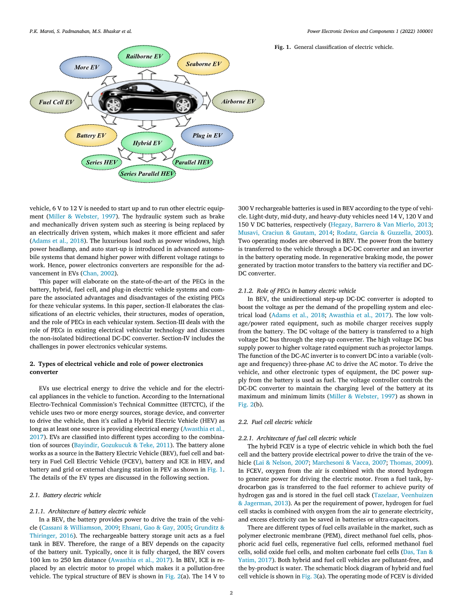 本文将阐述电池、混合动力、燃料电池和插电式电动汽车系统中的PECs的最新技术,并比较这些车辆系统中现有PECs的相关优势和劣势。在本文中,第二节阐述了电动汽车的分类、结构、运行模式以及PECs 在每个车辆系统中的作用。第三节讨论了PEC在现有电动汽车技术中的作用,并讨论了非隔离双向DC-DC转换器。第四节包括电力电子车辆系统中的挑战。