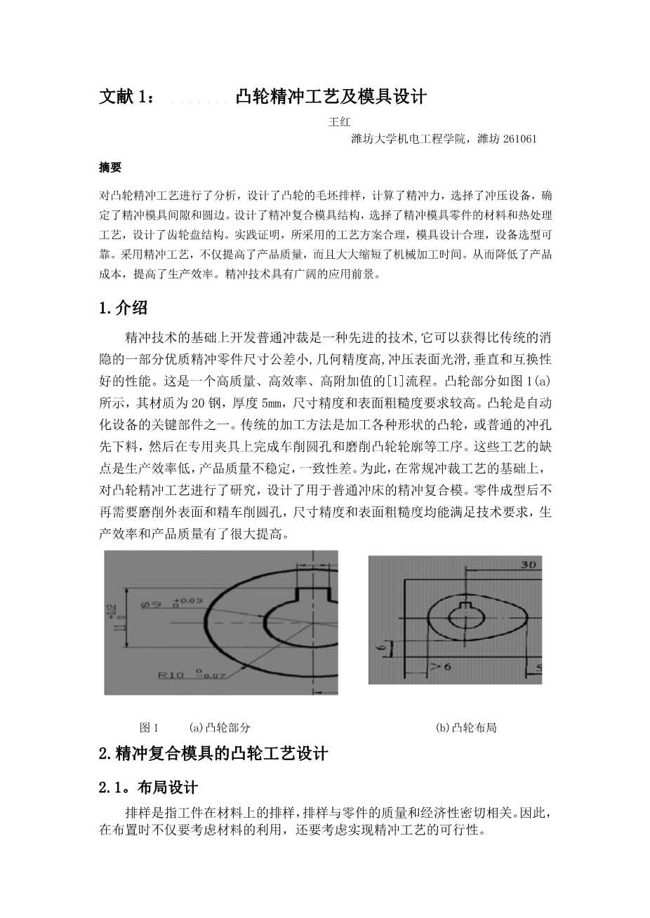 凸轮精冲工艺及模具设计外文翻译资料 2023-01-17 09:24:33 英语译文共 9 页,剩余内容已隐藏,支付完成后下载完整资料 资料编号:[238638],资料为PDF文档或Word文档,PDF文档可免费转换为Word 您需要先支付 30元 才能查看全部内容!立即支付 发小红书推广免费获取该资料资格。点击链接进入获取推广文案即可: Ai一键组稿 | 降AI率 | 降重复率 | 论文一键排版 PREVIOUS NEXT 您可能感兴趣的文章 风电叶片激光切割工艺分析及装备选型文献综述 立体车库夹持式搬运小车设计开题报告 滚筒式抛丸清理装置设计文献综述 回转轴系性能检测试验台设计与分析文献综述 一种恒磁吸铁器主磁头磁路设计仿真开题报告 某产品虚拟装配仿真系统开发文献综述 基于多焦距的PCB图像采集平台的搭建与应用开题报告 液压离合器操纵总成试验系统设计开题报告 塔式起重机回转机构的改进设计开题报告 轮式排水管道检测机器人运动机构设计开题报告