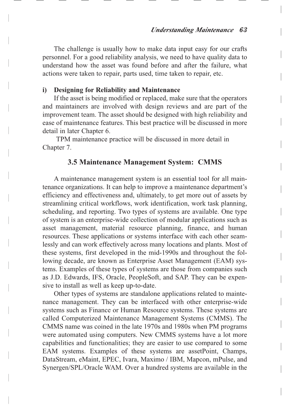 维护管理系统是所有维护机构必不可少的工具。它可以帮助提高维修部门的效率和效益,并最终获得更多的资产通过简化关键的工作流程,工作识别,工作任务规划,调度和报告。有两种类型的系统可用。一种类型的系统是一个企业范围内的模块化应用,如资产管理,材料资源规划,财务和人力资源的集合。这些应用程序或系统无缝地相互连接,可以有效地工作在许多地点和植物。大多数这些系统,首先开发在20世纪90年代中期,在接下来的十年中,被称为企业资产管理(EAM)系统。 这些类型的系统的例子是那些从公司如J.D. Edwards、IFS、Oracle,PeopleSoft,SAP。它们可以是昂贵的安装以及保持最新。
