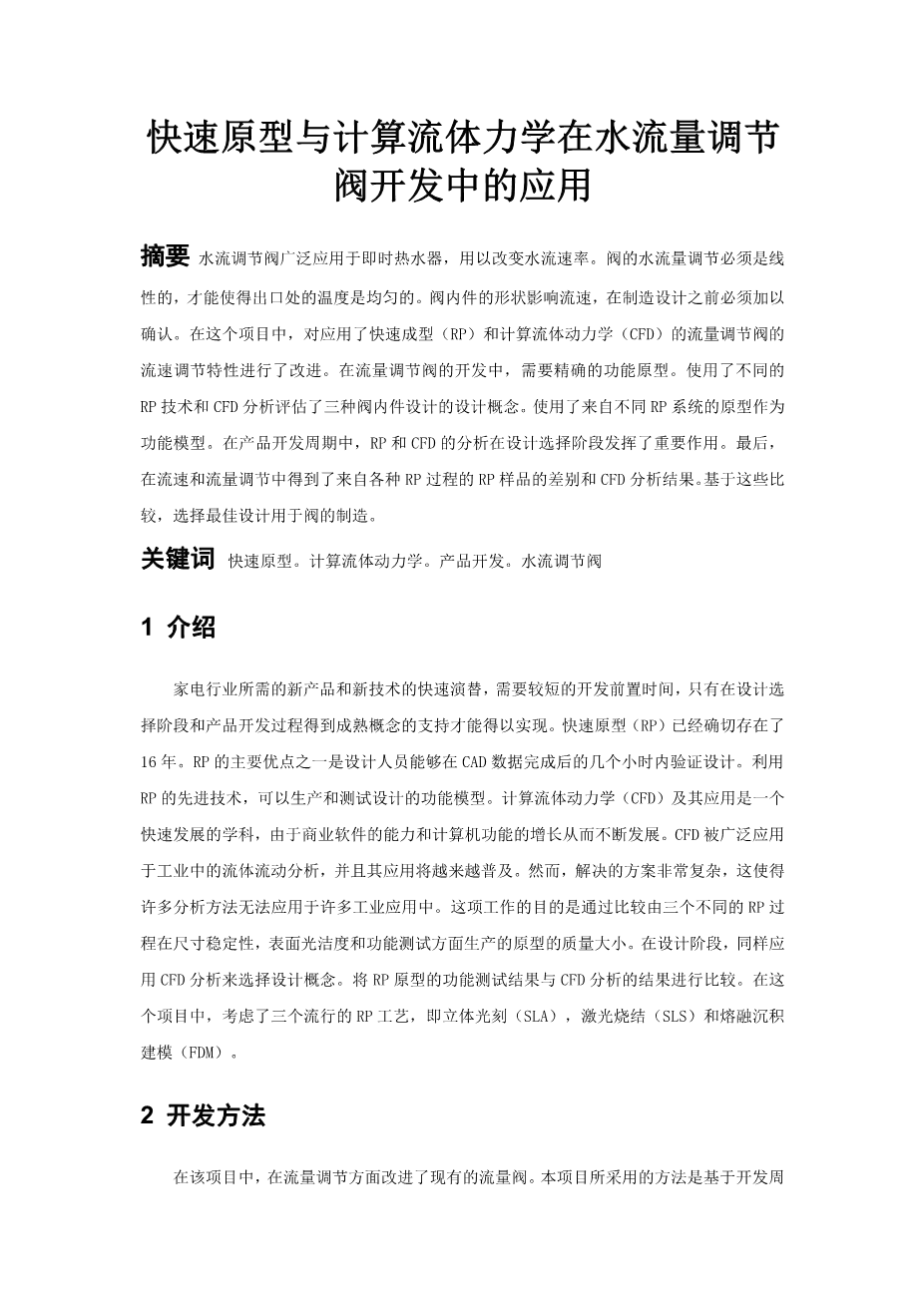 快速原型与计算流体力学在水流量调节 阀开发中的应用外文翻译资料
