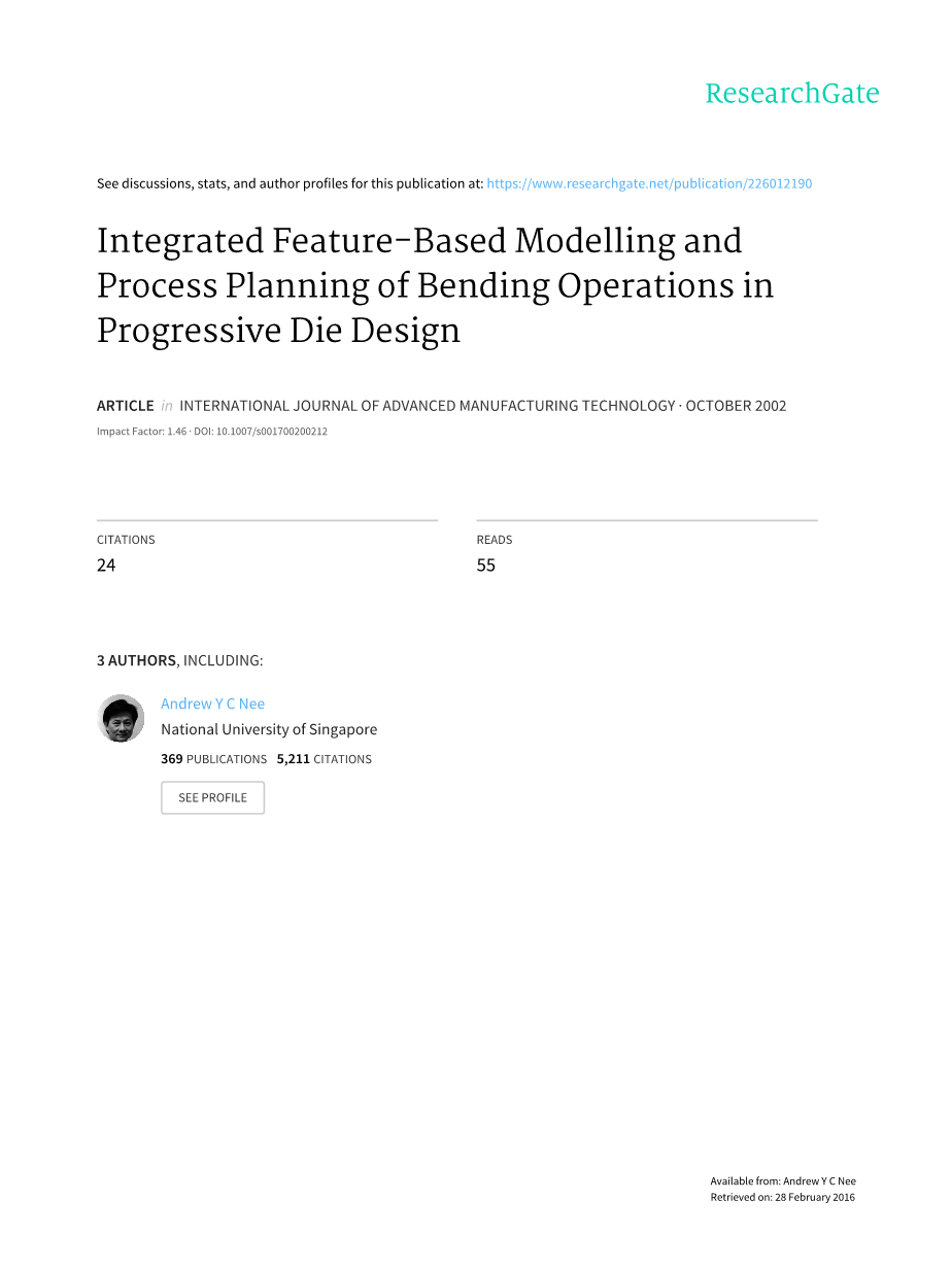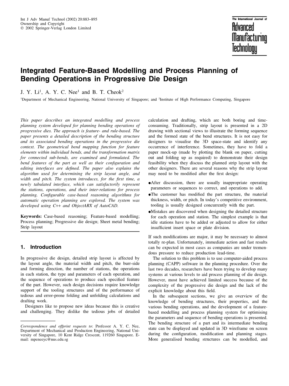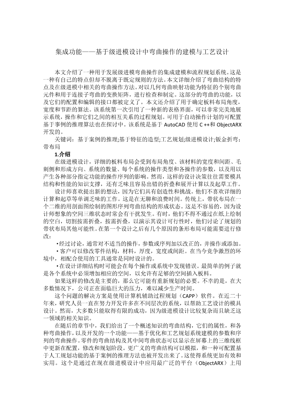 集成功能一一基于级进模设计中弯曲操作的建模与工艺设计外文翻译资料 2023-02-27 09:09:33 英语原文共 14 页,剩余内容已隐藏,支付完成后下载完整资料 英语原文共 15 页,剩余内容已隐藏,支付完成后下载完整资料 资料编号:[146966],资料为PDF文档或Word文档,PDF文档可免费转换为Word 您需要先支付 30元 才能查看全部内容!立即支付 发小红书推广免费获取该资料资格。点击链接进入获取推广文案即可: Ai一键组稿 | 降AI率 | 降重复率 | 论文一键排版 PREVIOUS NEXT 您可能感兴趣的文章 风电叶片激光切割工艺分析及装备选型文献综述 立体车库夹持式搬运小车设计开题报告 滚筒式抛丸清理装置设计文献综述 回转轴系性能检测试验台设计与分析文献综述 一种恒磁吸铁器主磁头磁路设计仿真开题报告 某产品虚拟装配仿真系统开发文献综述 基于多焦距的PCB图像采集平台的搭建与应用开题报告 液压离合器操纵总成试验系统设计开题报告 塔式起重机回转机构的改进设计开题报告 轮式排水管道检测机器人运动机构设计开题报告
