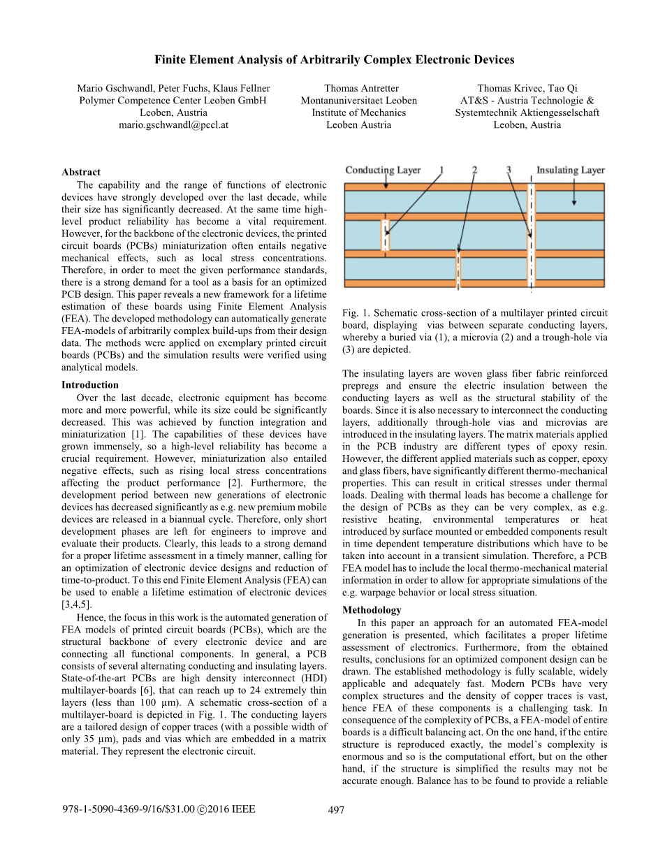 电子设备的功能和功能范围在过去十年中有很大程度的发展,然而他们的尺寸大小明显减少。 与此同时,高水平的产品可靠性已成为一个至关重要的要求。然而,对于电子设备的主干,印刷电路板(PCBs)小型化常常带来负面影响机械效应,例如局部应力集中。因此,为了满足给定的性能标准,存在对作为优化的基础的工具的强烈需求PCB设计。 本文揭示了一生的新框架使用有限元分析估计这些电路板板(FEA)。开发的方法可以从他们的设计数据自动生成任意复杂的FEA模型。 该方法应用于示例性印刷电路板(PCBs)和仿真结果验证使用分析模型。
