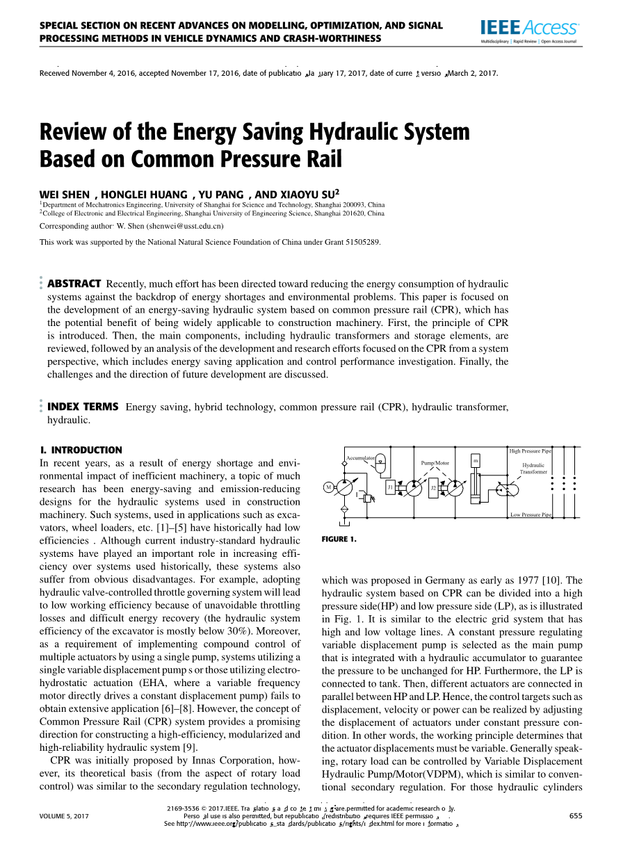 关键词:节能,混合技术,公共压力轨(CRP),液压系统,液压变压器。