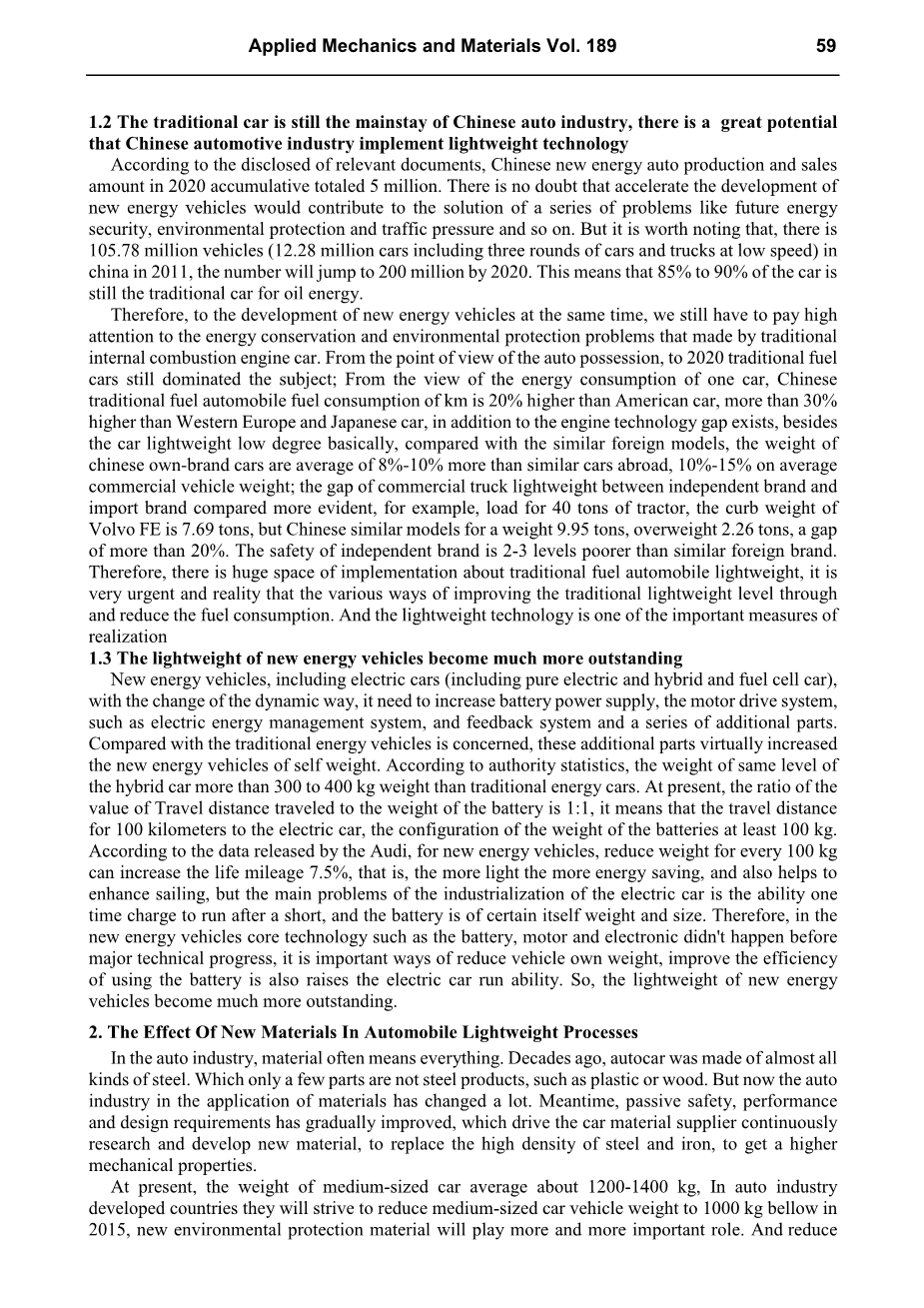 1.1汽车轻量化是实现能量节约和环境保护的重要方法措施和基础科学技术