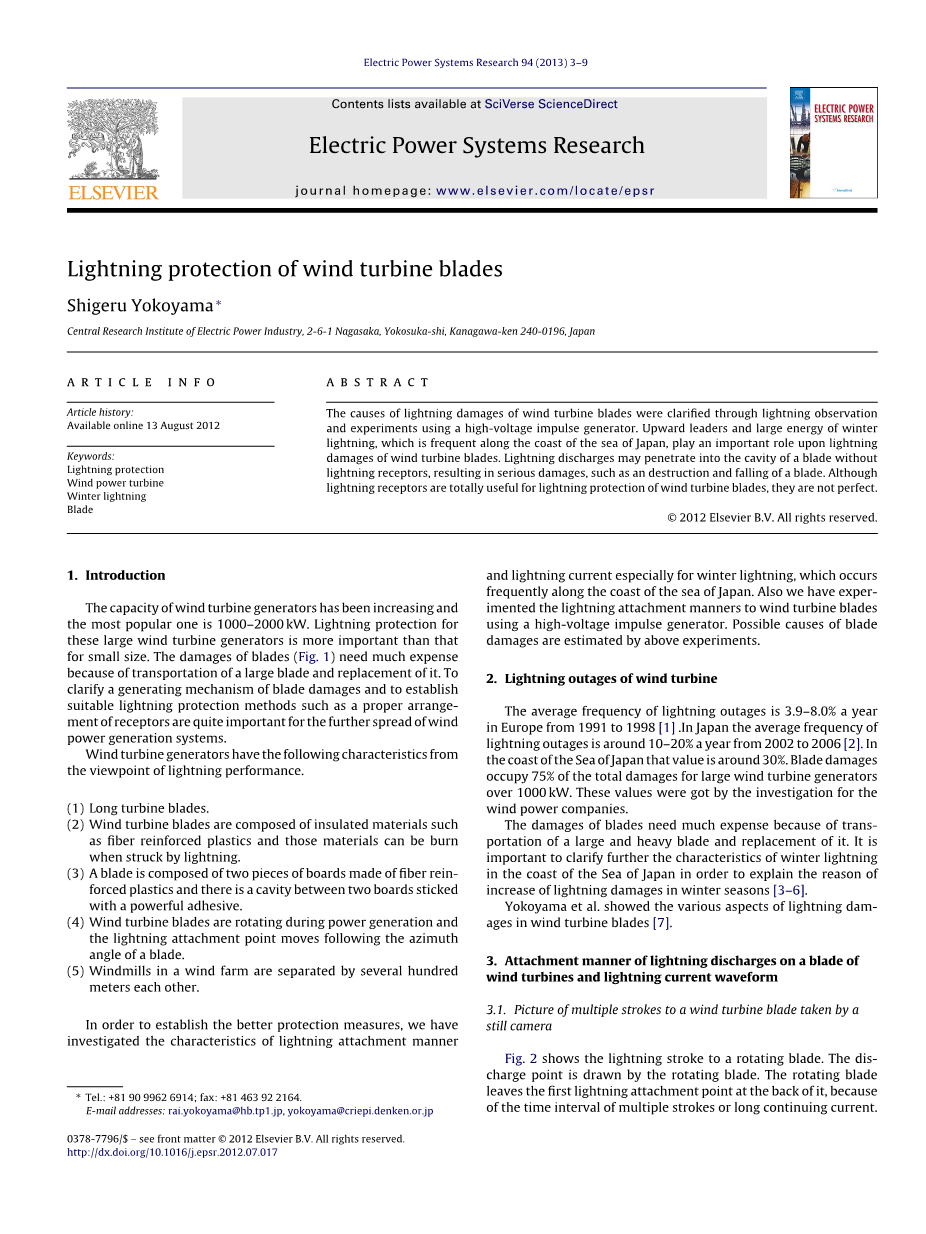为了建立更好的保护措施,我们研究了日本海沿岸频繁发生的冬季雷电,尤其是雷击点和雷电流特征,并用高压脉冲发生器对风力发电机叶片的雷击方式进行试验,预测叶片损坏的可能原因。